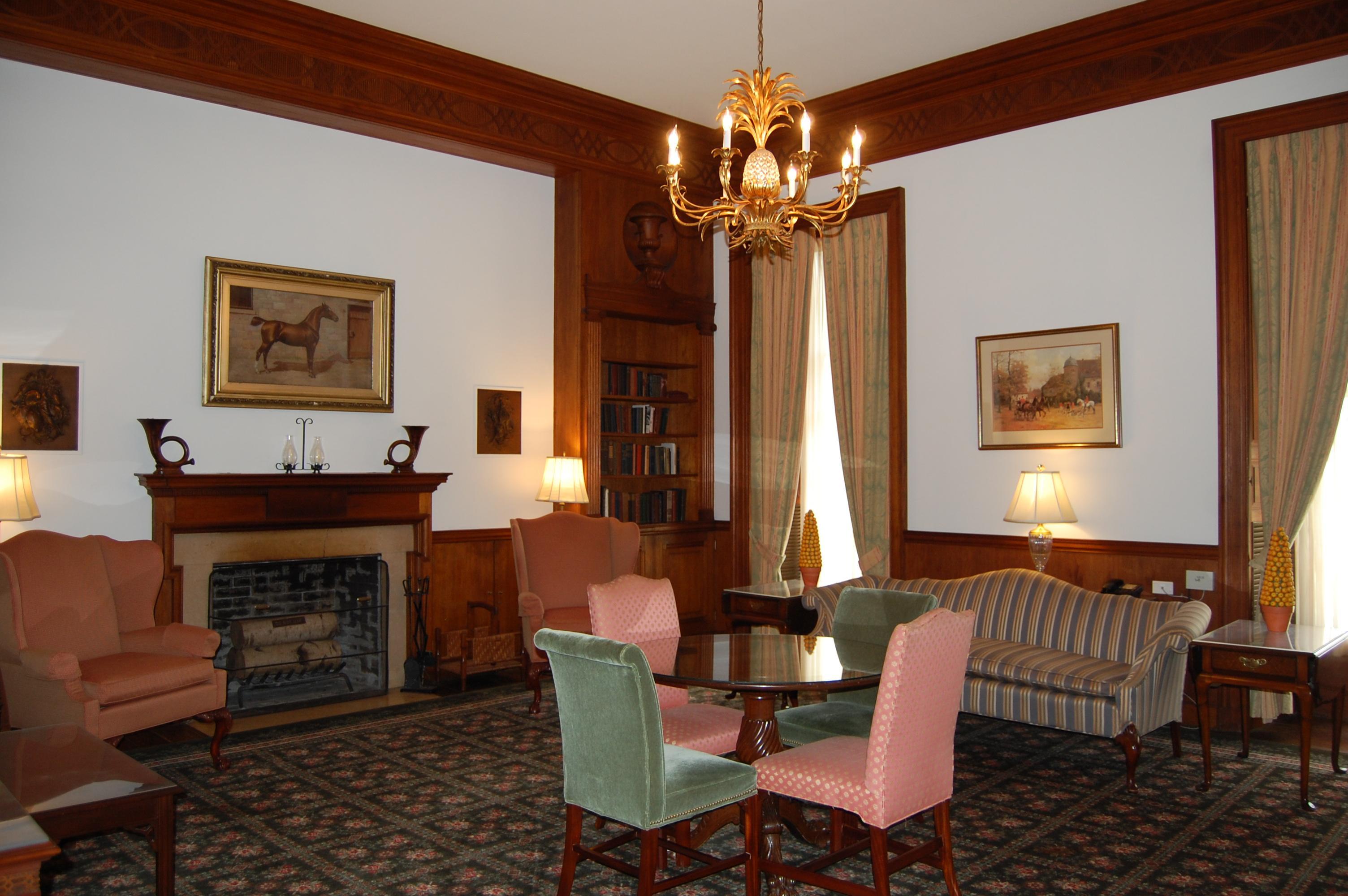 This classic room features original wood paneling and a South Porch with elaborate columns. More elegance with warmth