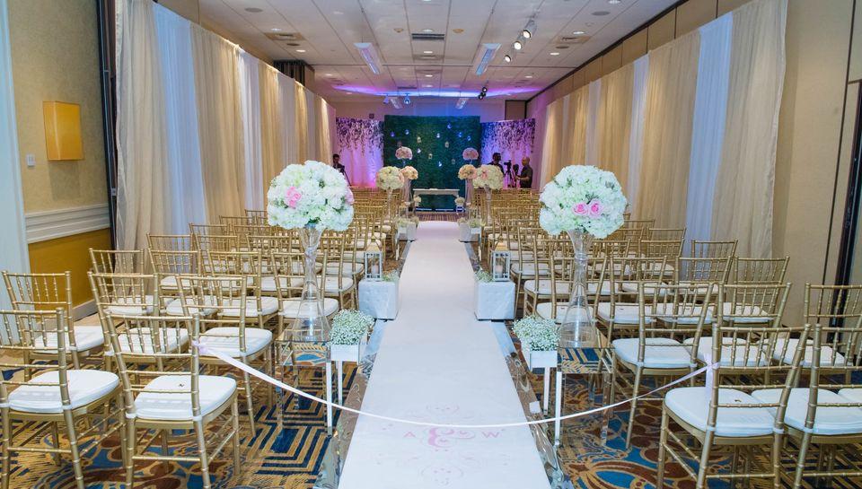 Situated along the banks of the picturesque Merrimack River, only 30 minutes north of downtown Boston, The DoubleTree Boston- Andover is a beautiful setting to host your nuptial celebrations. Wedding celebrations take a special touch and attention to detail, and that's just what you'll find when you plan your big event at the DoubleTree Boston-Andover. Along with professional wedding planners, catering service and vendor recommendations, the venue provides a variety of versatile sites for you to choose from. The old-fashioned gazebo is ideal for taking pictures of the couple, and the breezy courtyard offers the perfect setting for outdoor cocktails and casual celebration. With impressive stature and flexible arrangement, the elegant grand ballroom can be customized to suit your wedding perfectly, along with a slick parquet dance floor for the reception party. Your guests will dine in the height of flavor with specialties from the executive chef, who favors fresh local ingredients with international flare.