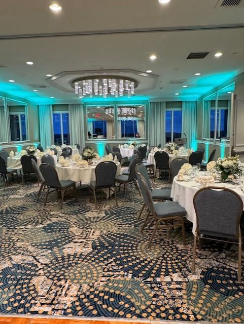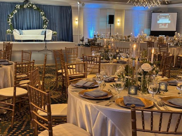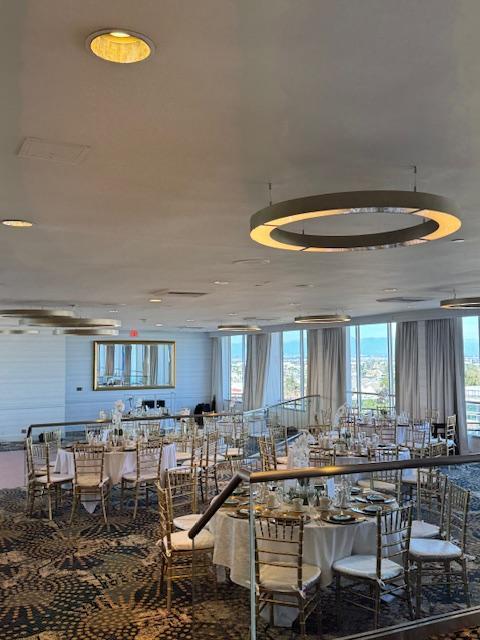 The venue provides comprehensive event support, including tables, chairs, linens, glassware, flatware, a dance floor, and stage setup Event services: Catering (buffet, plated, family‑style), bar options (open or cash), audio‑visual support, and assistance from seasoned planners help streamline every detail Accessibility & perks: The ballroom is handicap‑friendly and making accessibility and guest comfort a breeze.