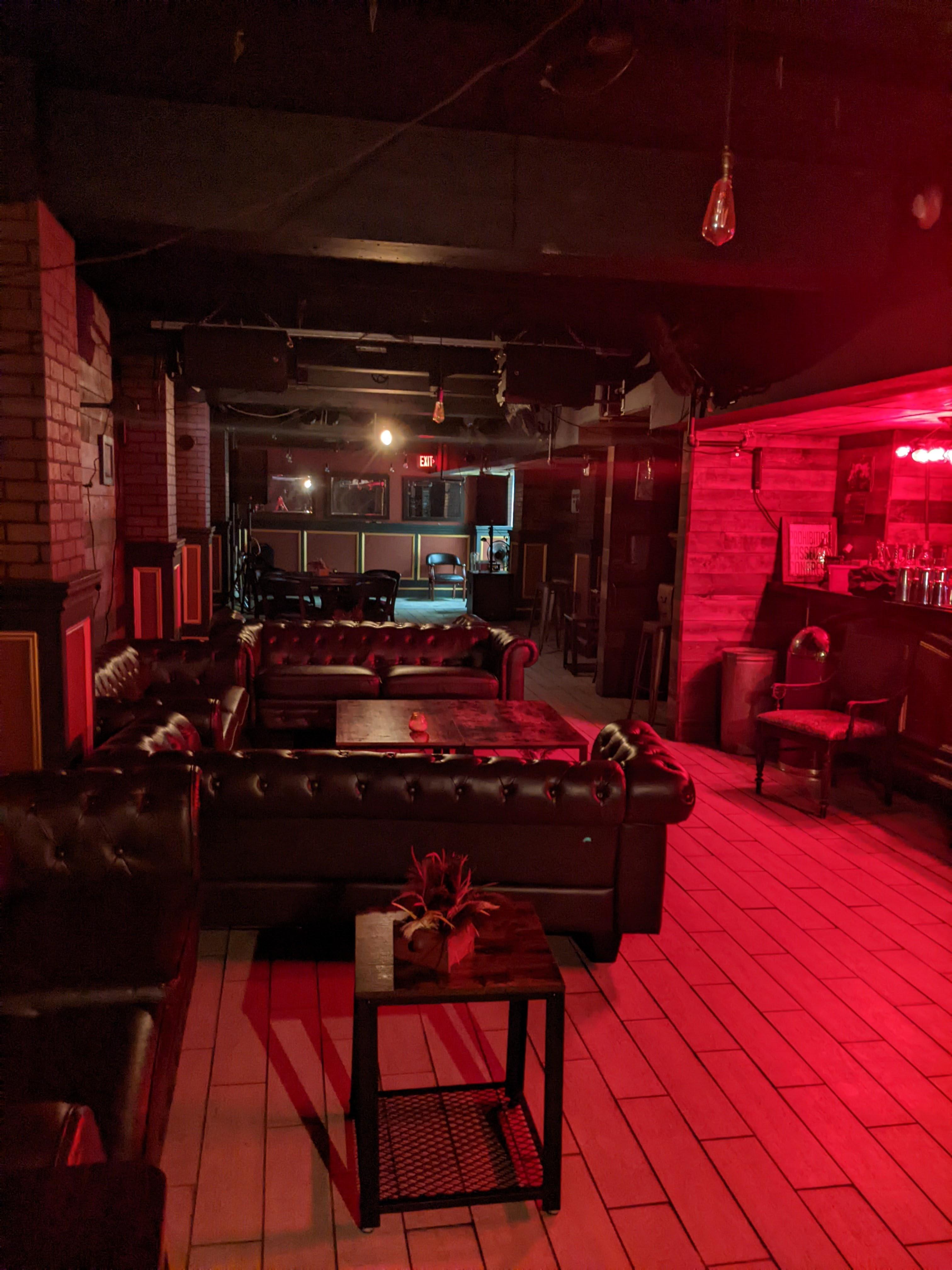 This space features a prohibition themed Speakeasy with a full sound setup, perfect for a live band or DJ. There is a fully stocked bar available in the room.