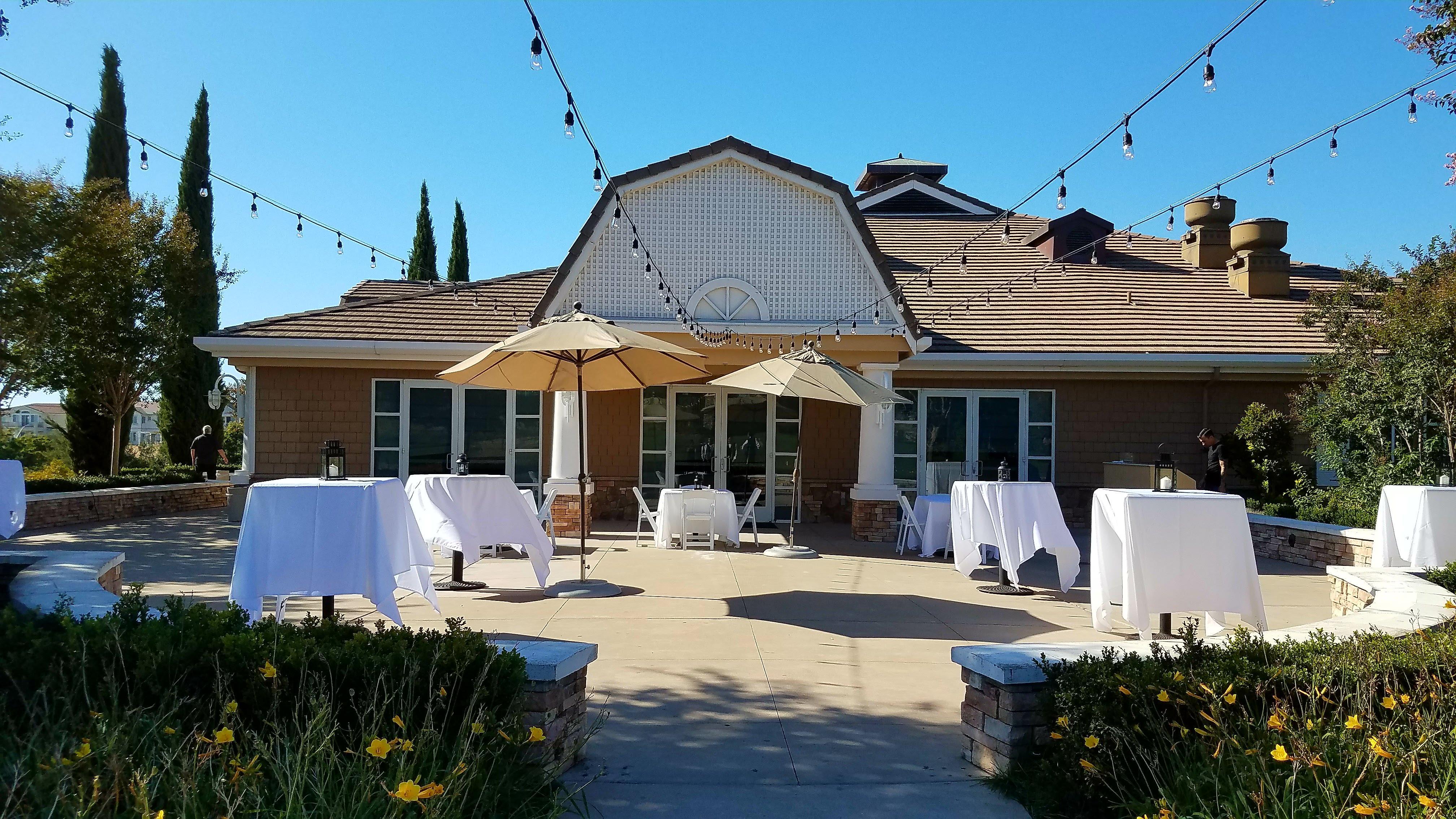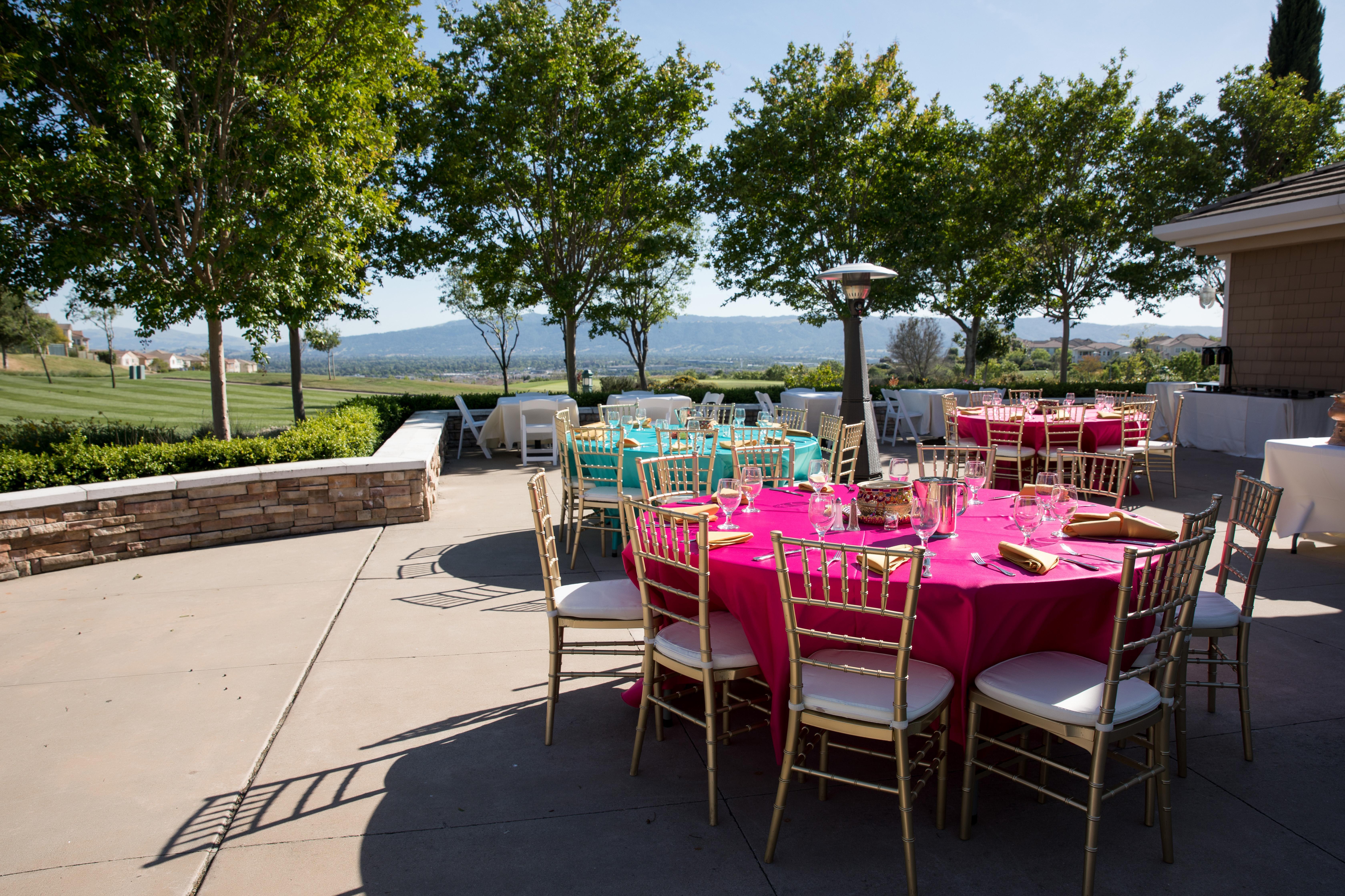 Overlooks the golf course & valley. Ideal for cocktail parties. Also comes with bistro lights for those coveted California weddings!