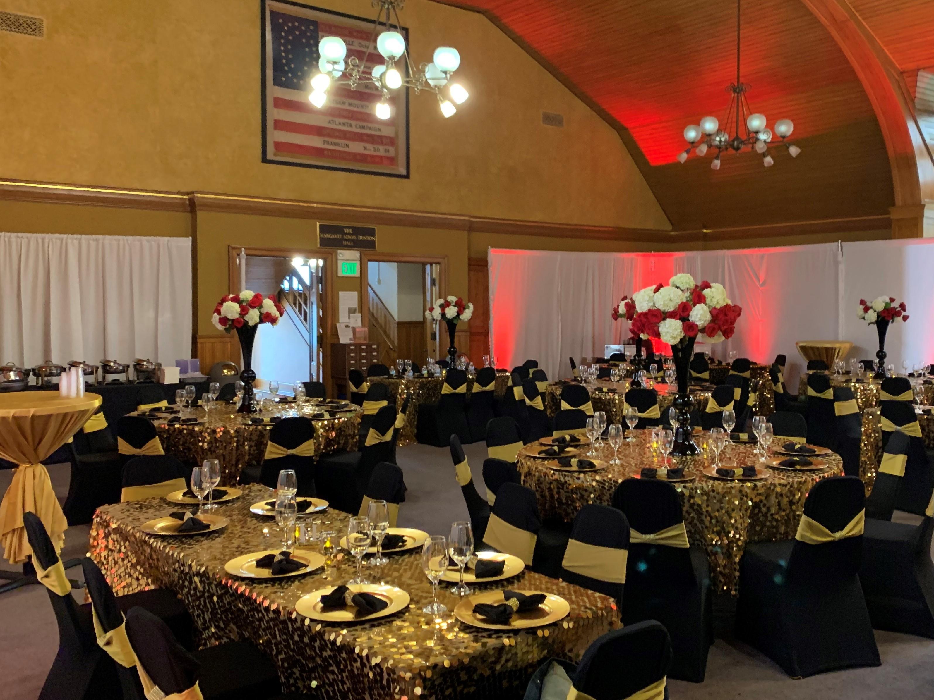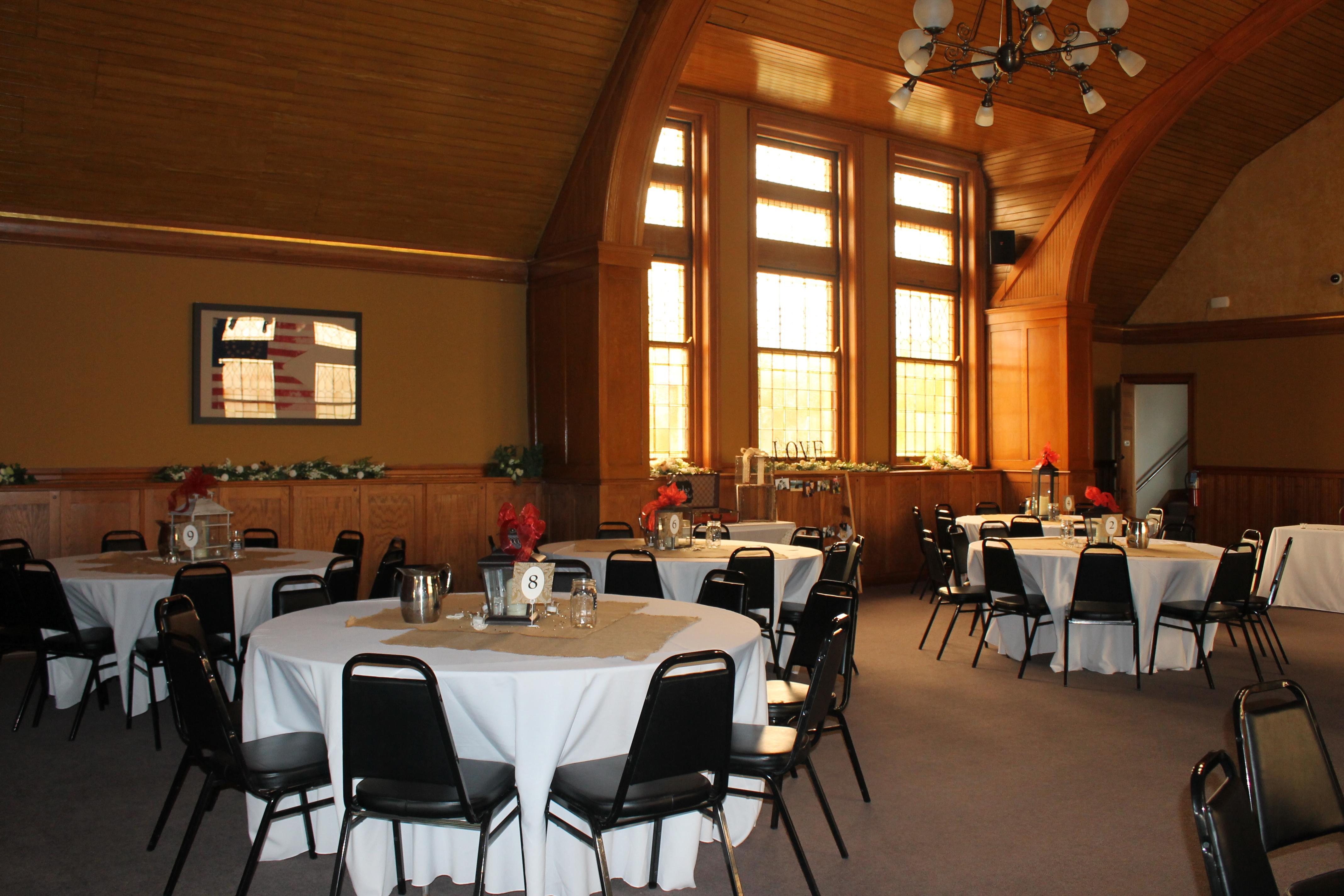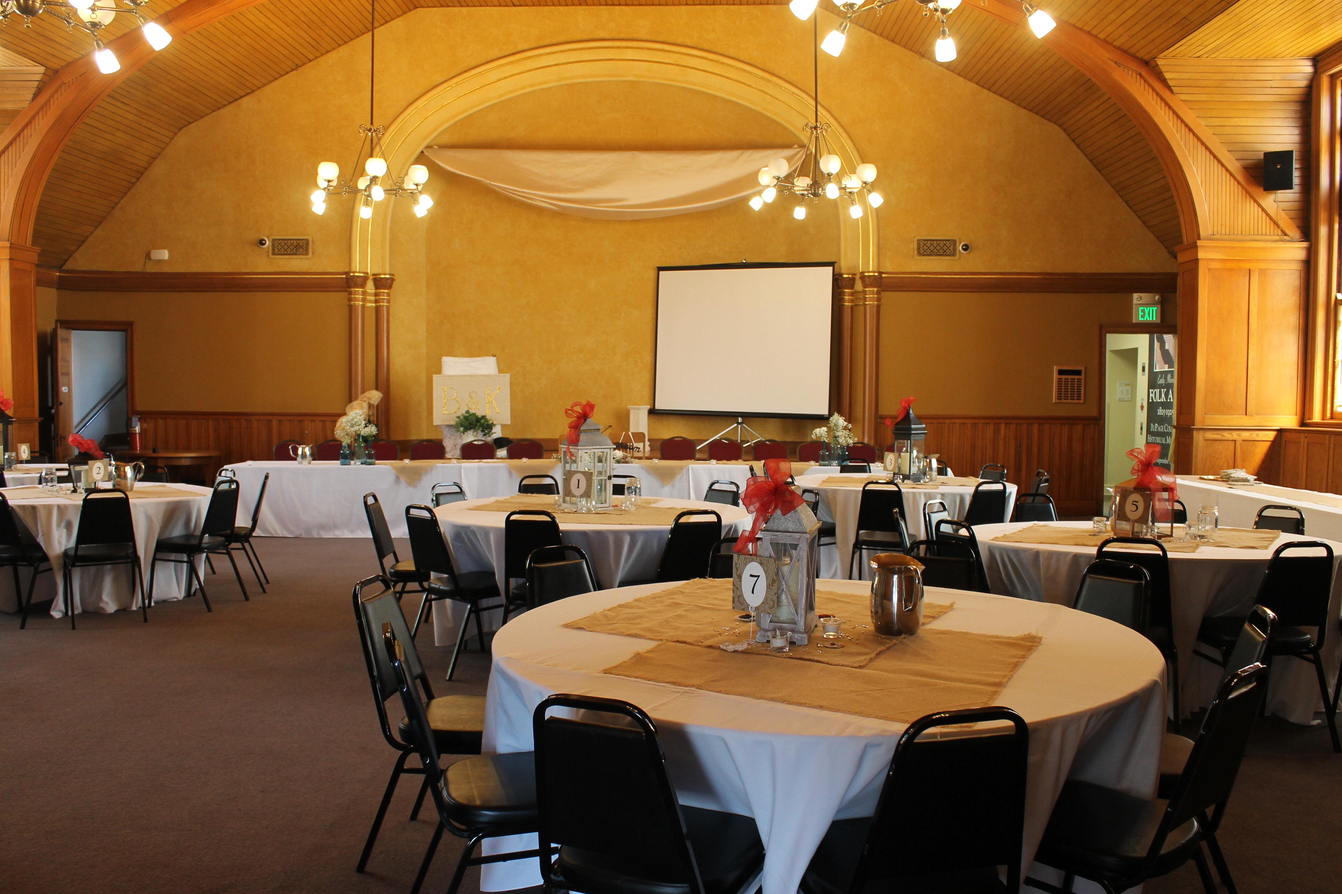 Originally an auditorium, the Margaret Adams Dunton Hall today serves as the event space for the DuPage County Historical Museum. The room is a blank slate that can be transformed into an elegant banquet hall to meet the needs of your event.