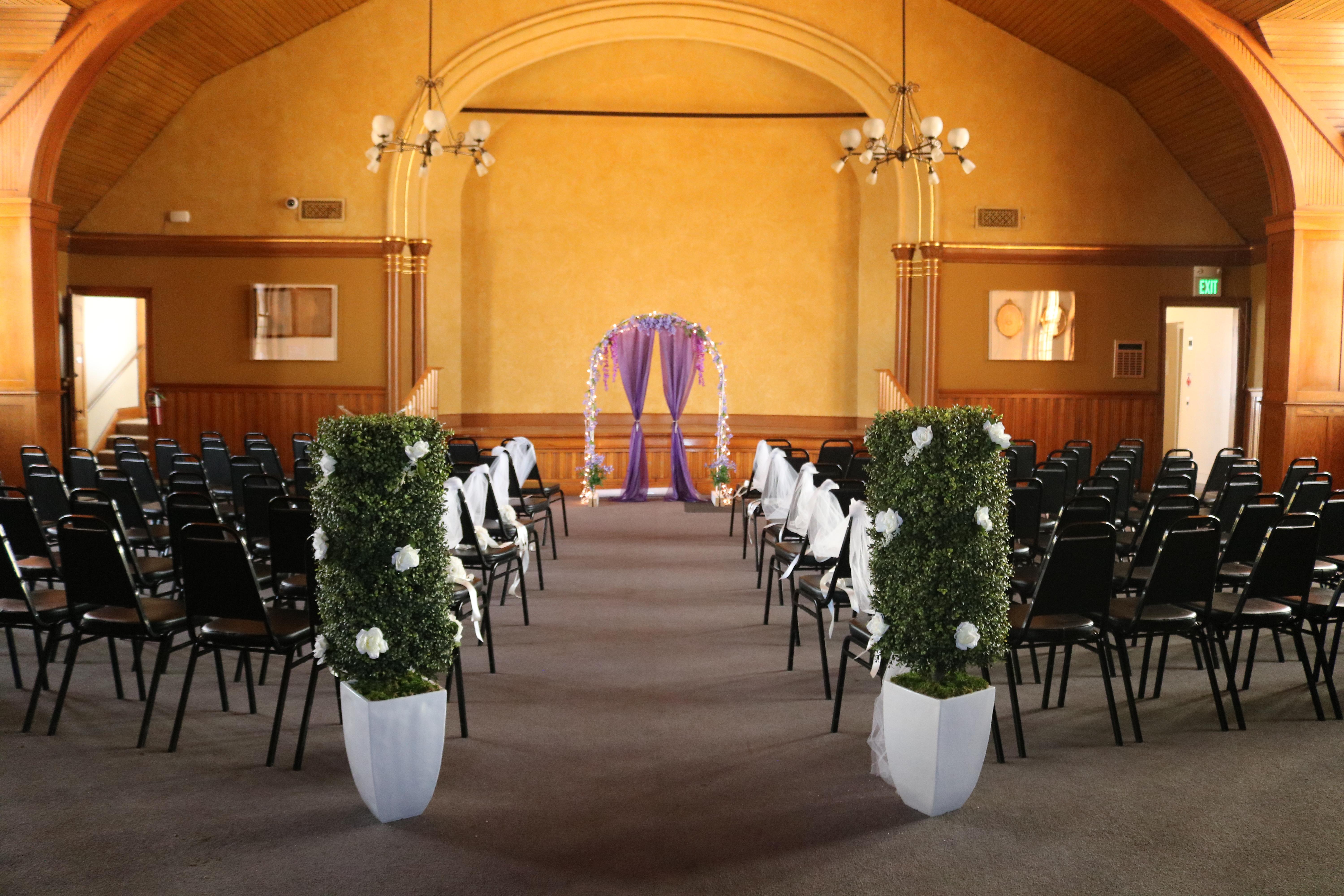 For wedding ceremonies only. Package includes: - Use of 100 black chairs - Use of a sound system with microphones and device hookups - 2-hour set up the day before (9A-4P) or morning/afternoon of (8A-Rental Start Time) - Use of historic offices for wedding party - Access to Museum's exhibits