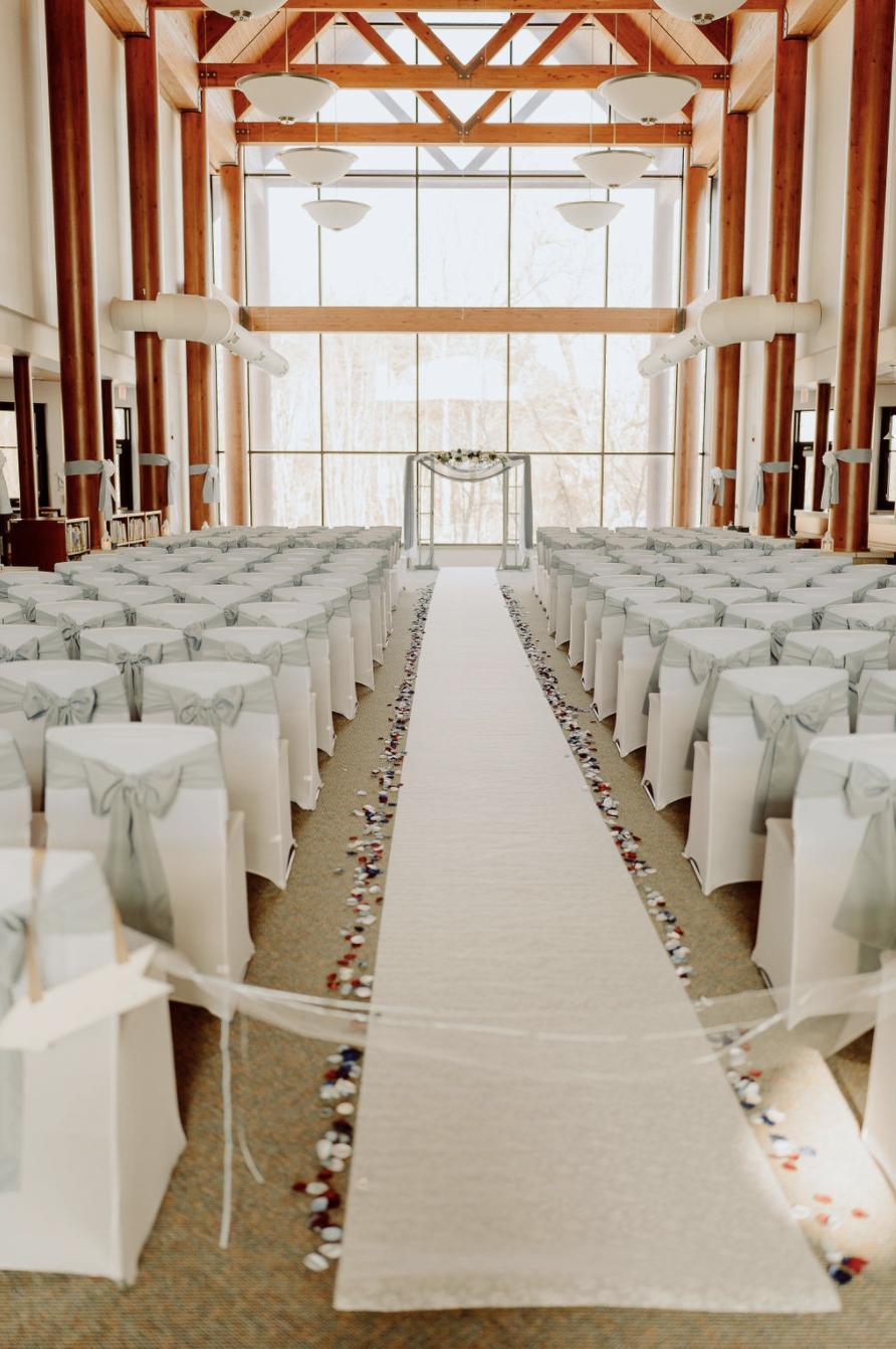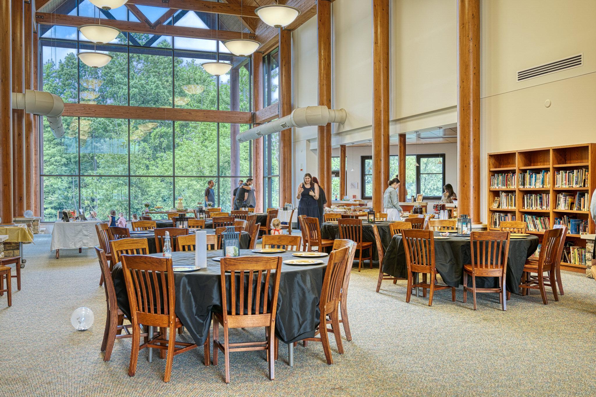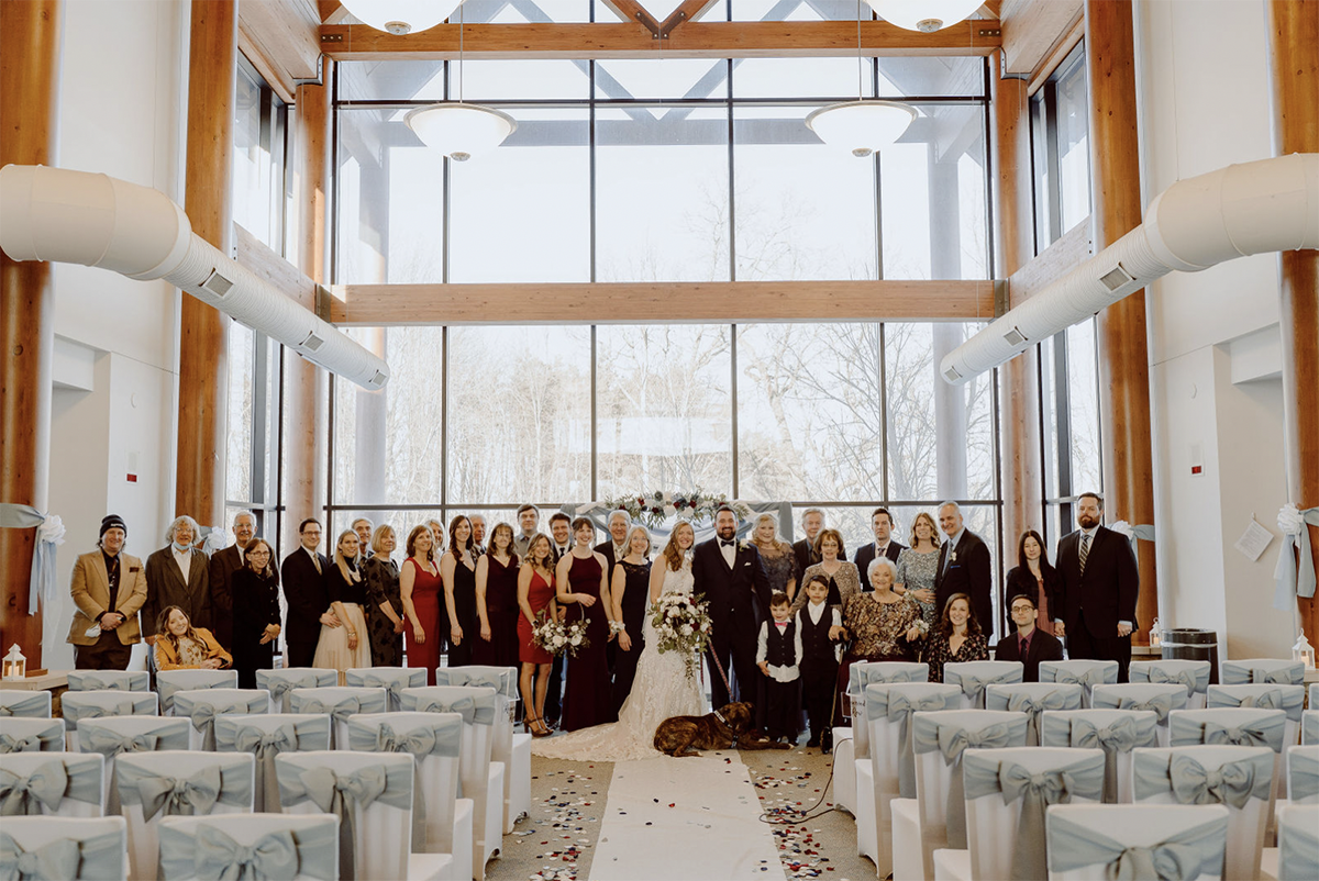 Located on 20 beautiful acres, your guests will enjoy breathtaking views of woodlands and wetlands. A grand front entry, high wood-beam ceilings, soaring windows, custom woodwork, and classy, elegant decor, create the perfect backdrop for your special event.