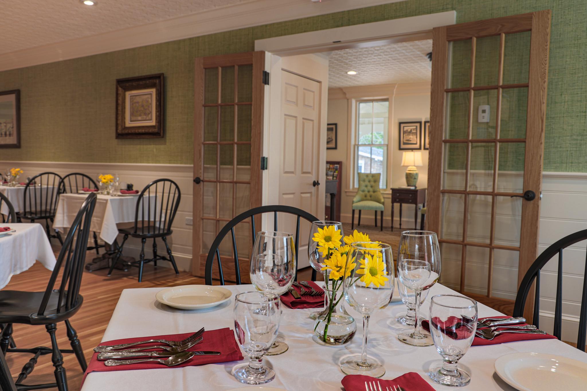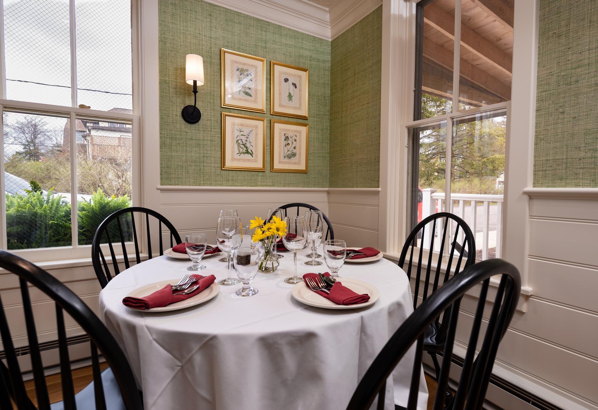This private indoor space is perfect for small events and gatherings. Complete with a connecting sunroom, this area is bright, spacious, and charming. Tables and chairs provided.