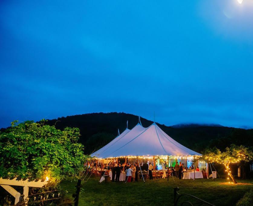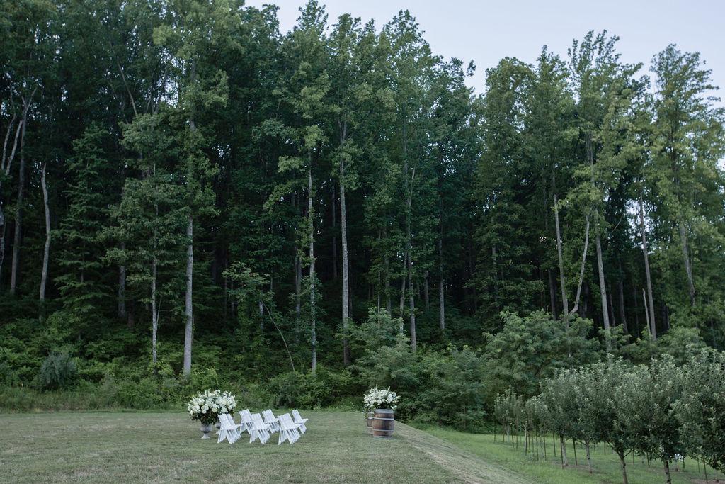The Terraces are in a prime location overlooking the orchard with mountain views. Complete with a sail tent, this space is ideal for hosting all aspects of your event, from the wedding ceremony, post-ceremony cocktail hour and wedding reception. There is plenty of room on each of the two 30,000+ square foot grassy terraces for lawn games, lounging in Adirondack chairs for the sunset, and more.