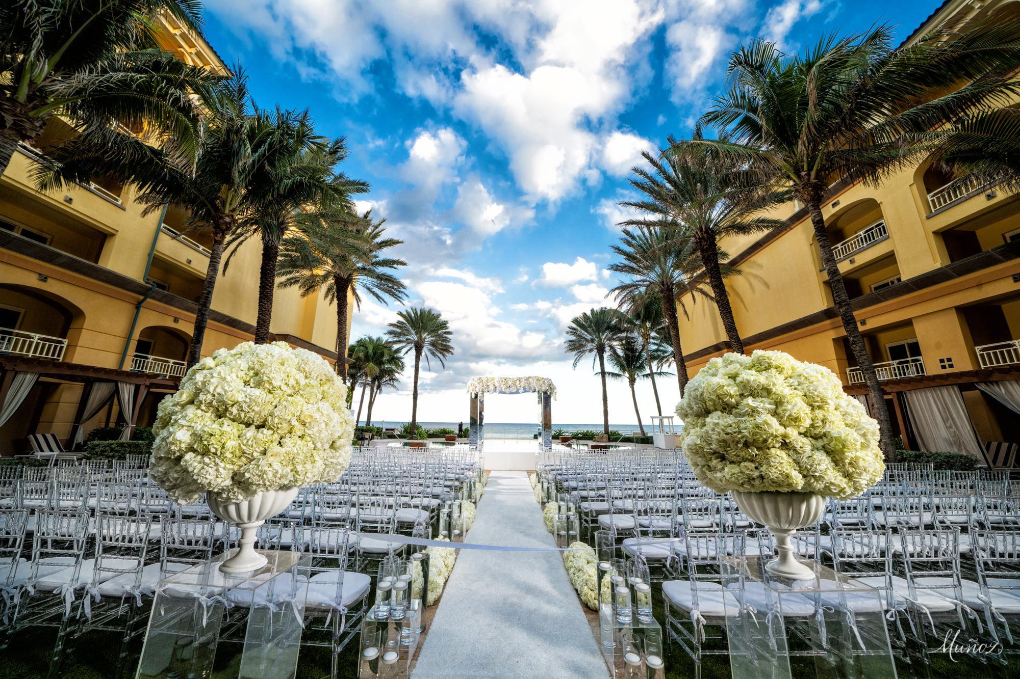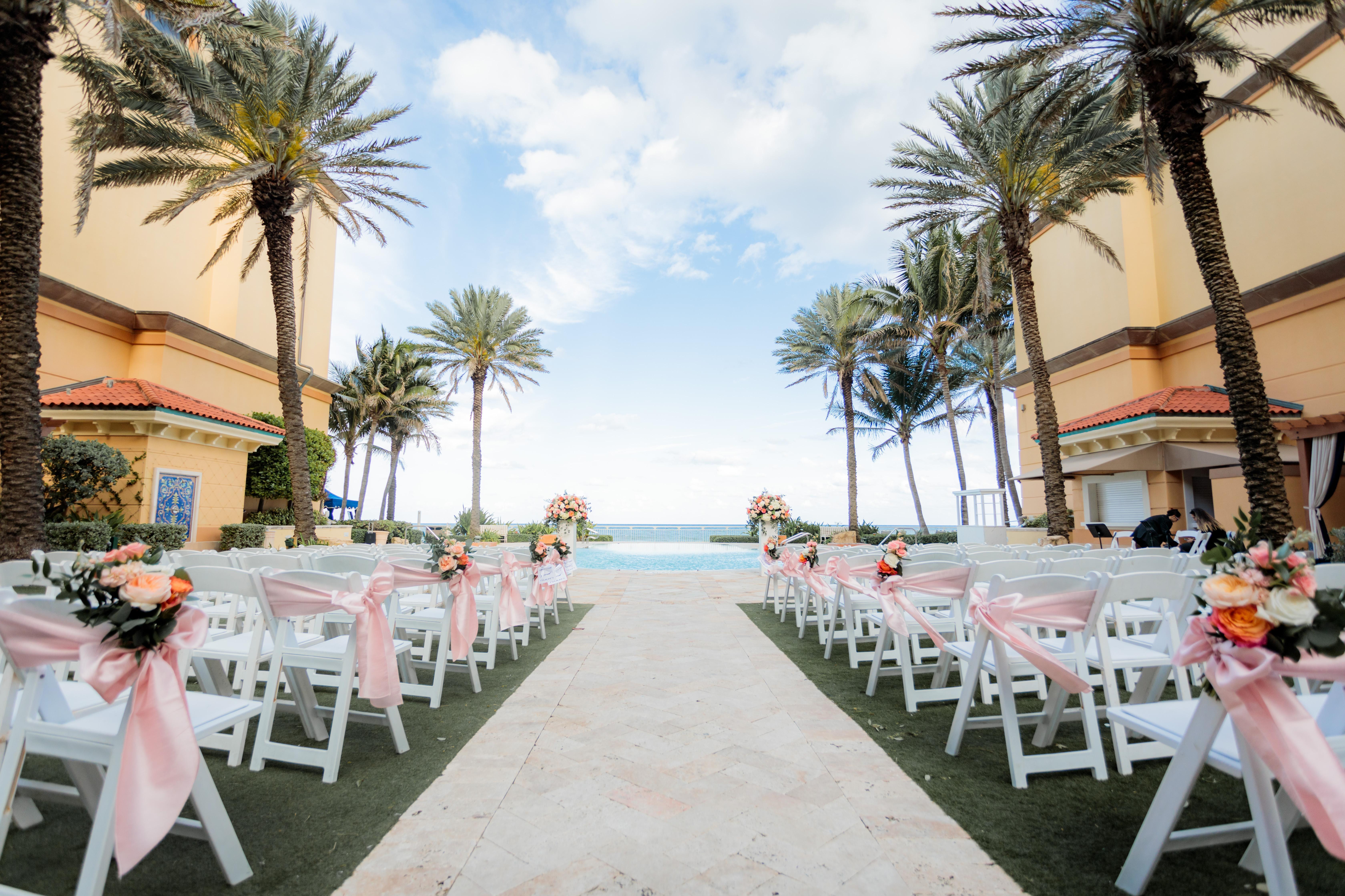 Allow the sea breeze and the crashing of the waves to be the soundtrack for this once in a lifetime moment. The Courtyard is the premier ceremony location at Eau Palm Beach Resort & Spa. This oceanfront wedding ceremony venue is approximately 3,000 square feet, accommodating 50 to 400 guests