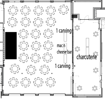 - Designated bar area - Removable stage - Access to audio.visual room for light board and sound board - Double projectors - large screen with HDMI capacbilities - Round or Rectangle tables (seating 8 - 10) - Black Padded Folding Chairs - Catering Equipment, glassware, plateware, silverware -