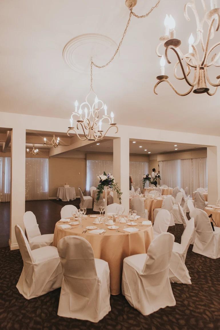 When combined with our Garden Room, our beautiful Main Dining Room can accommodate up to 250 guests for receptions, corporate events, and other large-scale functions. Featuring a stunning fireplace and sweeping views of the golf course through the charming French doors, the space includes a built-in dance floor and offers a variety of lighting and seating options. Dimensions: 48 ft. x 53 ft.