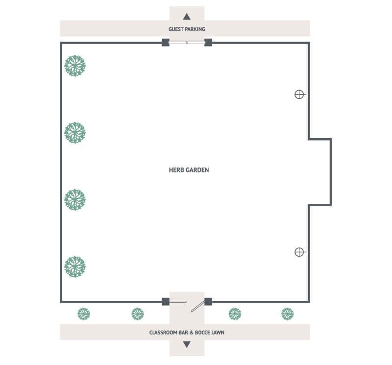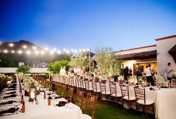 The Herb Garden at El Chorro offers a serene and elegant setting, featuring warm lighting, vibrant greenery, and breathtaking views of Camelback and Mummy Mountains. This intimate space is ideal for private gatherings, providing a peaceful atmosphere for your special occasion.