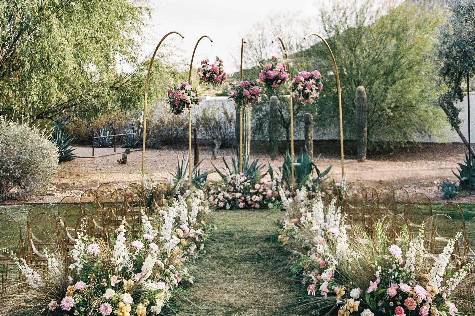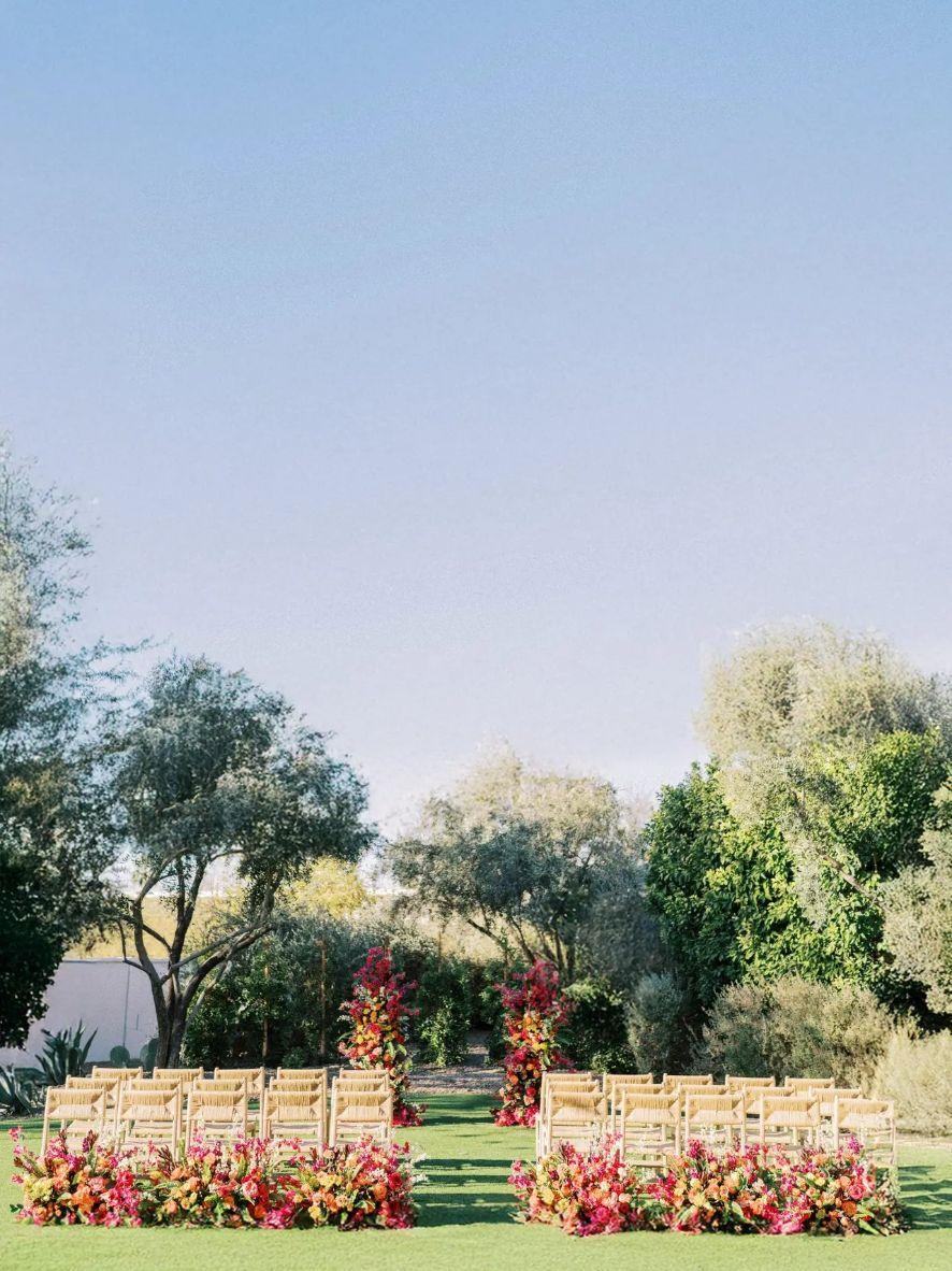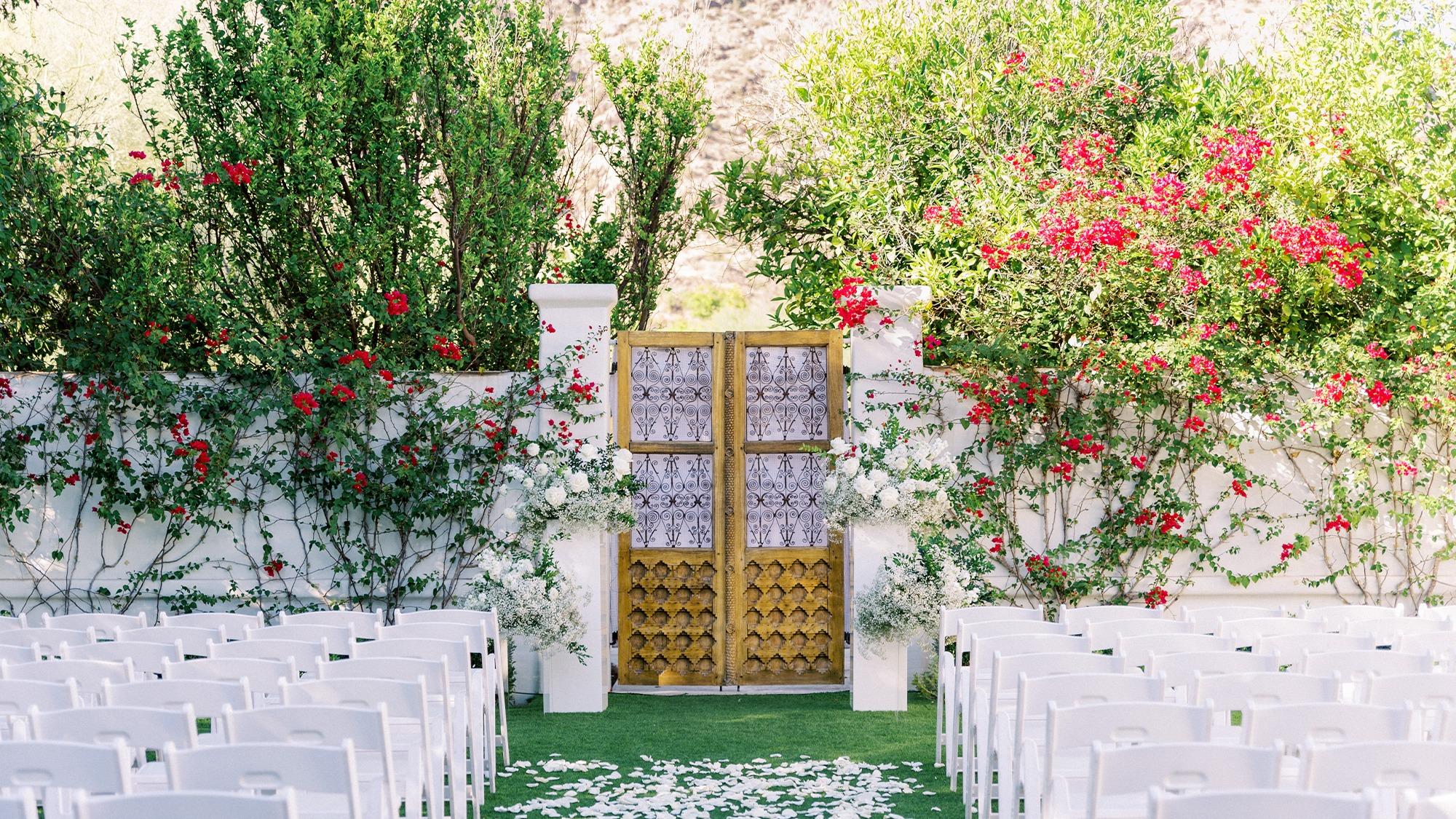 A lush desert oasis framed by iconic mountain views—perfect for saying 'I do
