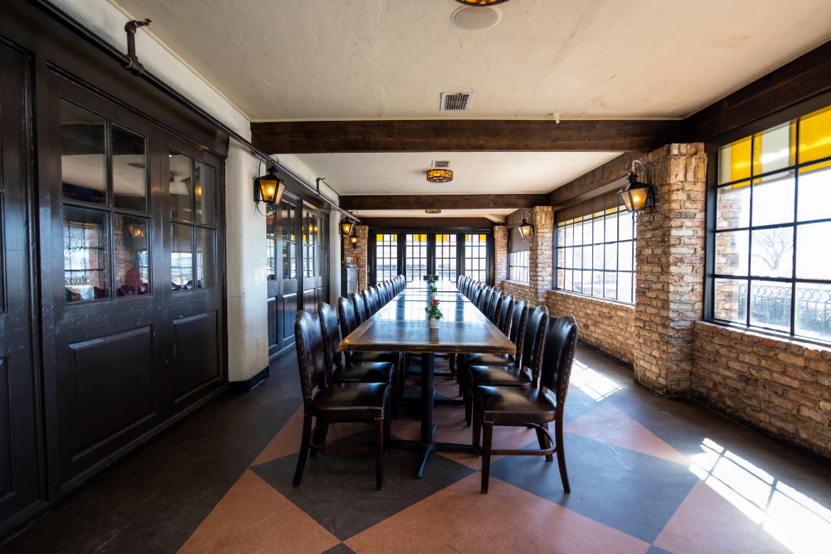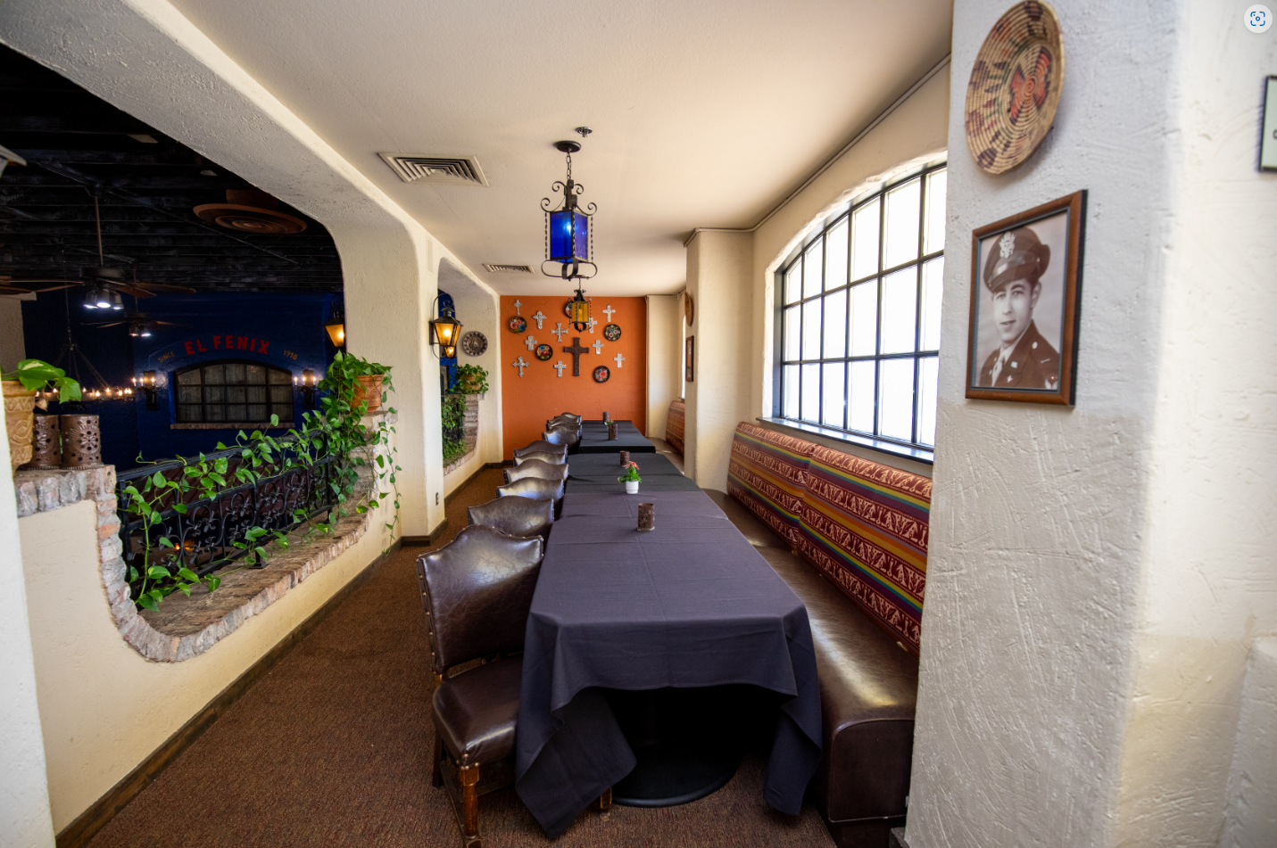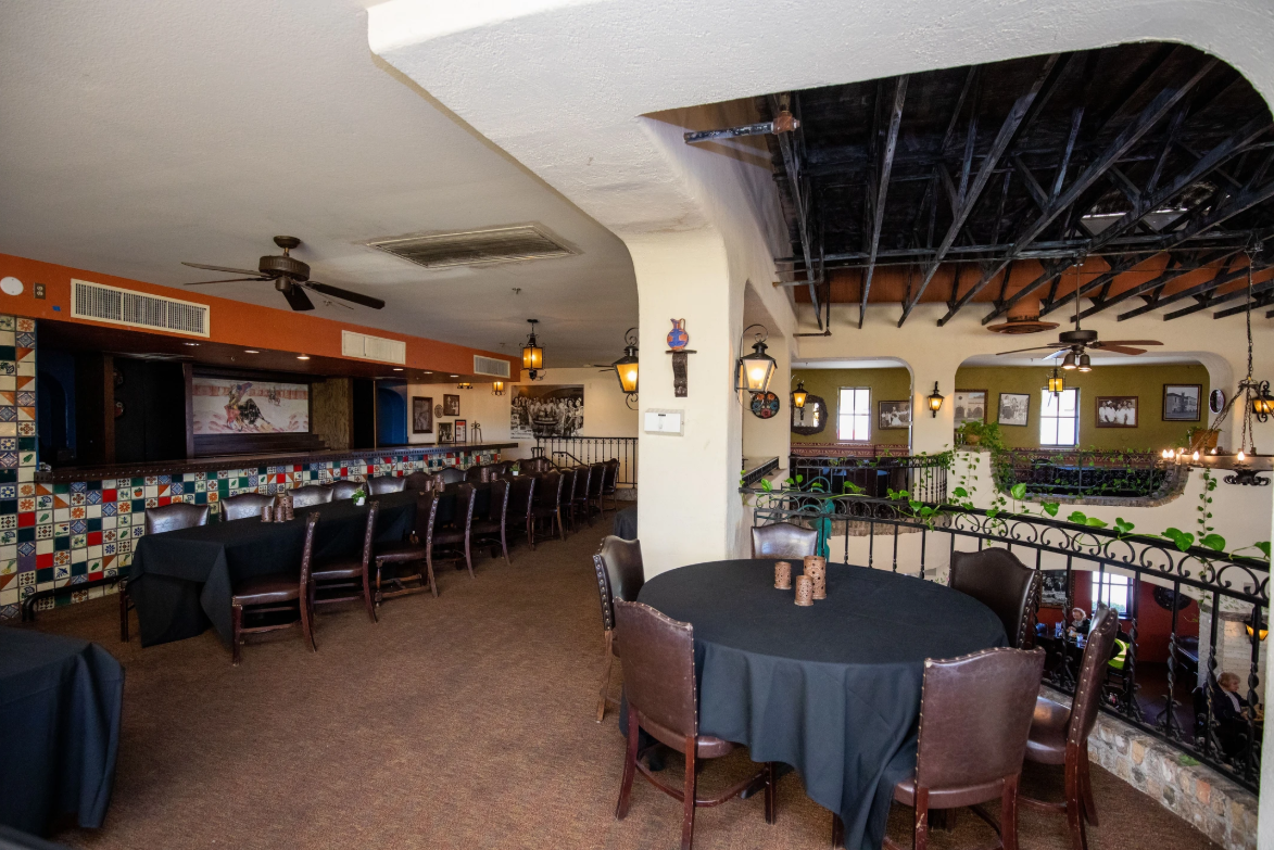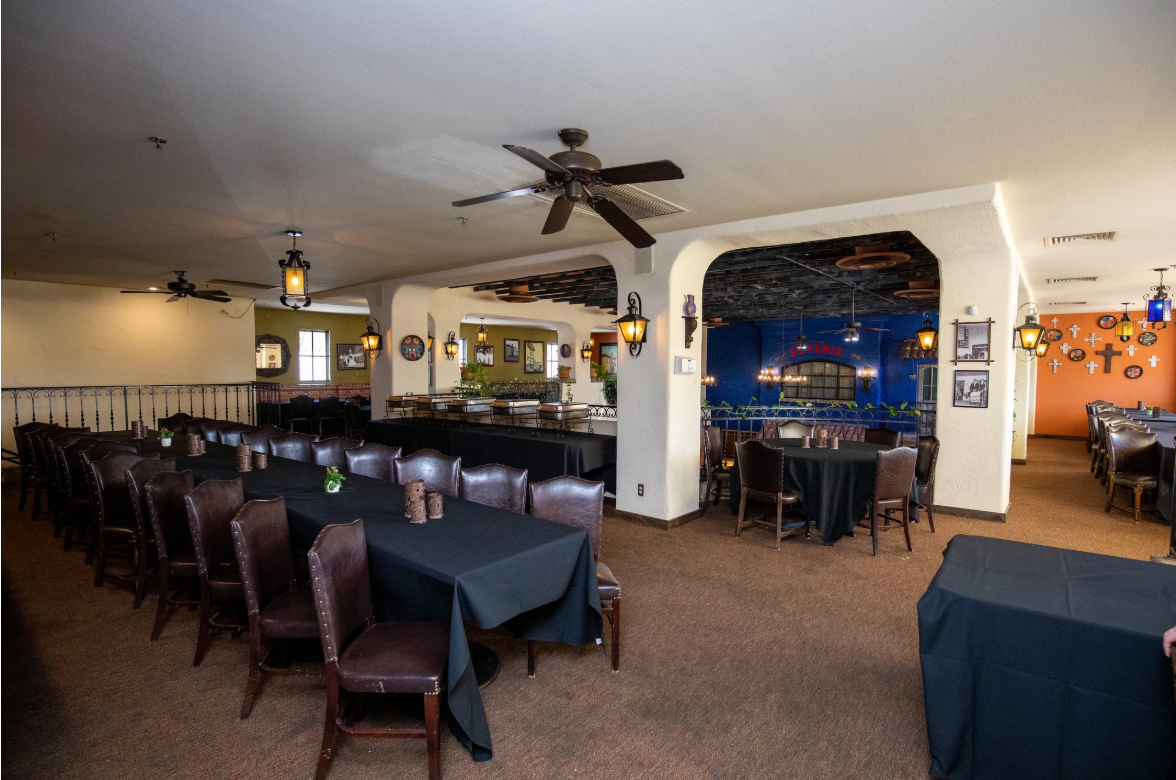 Perched above the lively ambiance of the restaurant below, this beautiful upstairs event venue is a hidden gem infused with Spanish charm. Warm terracotta tones, wrought-iron accents, and rustic wood details create an inviting and romantic atmosphere. Arched windows let in natural light, while colorful tilework and vintage-inspired décor transport guests to an old-world hacienda. This upstairs space blends elegance with cultural richness for a truly unforgettable event experience.