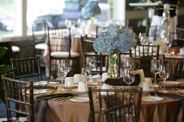This package includes a cash bar, 2 entrée buffet, house linens, club white chairs, house centerpieces, and your choice of silver or gold chargers.