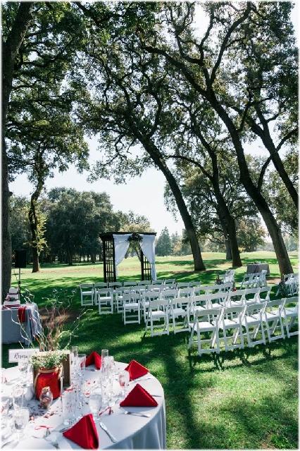 El Macero Country Club, nestled in the heart of a breathtaking 18-hole championship golf course, just 15 minutes from Downtown Sacramento. Our friendly and professional staff will work with you to bring your dream wedding to life and ensure your vision in order to deliver the ultimate wedding experience for you and your guests. The Oaks, our stunning and largest outdoor venue affords you and your guests a beautiful ceremony setting under the canape of our half century old Oak Trees. This is the great place for your ceremony or reception and can accommodate up to 300 guests. The Banquet room, with a stunning backdrop of the 18th hole and large sliding glass doors offering a unique indoor/outdoor venue option with an attached patio. This is a beautiful location and has a capacity of up to 150 guests. The Clubhouse Patio & Pool, is perfect if a Poolside reception with market lighting. Our pool with it's Golf Course views is a romantic outdoor option and can accommodate up to 300 guests