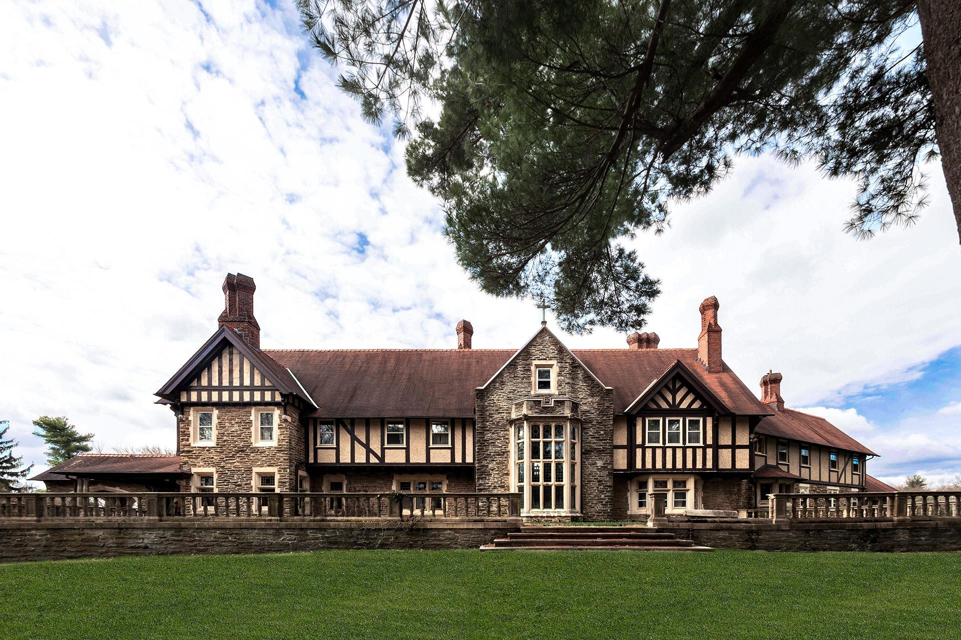 Built in 1898 by William L. Elkins, the interior was designed by esteemed French interior designers Allard et Fils, with beautiful frescoed ceilings, carved panels, marble columns, and breathtaking crystal chandeliers. The rooms are adorned with gold leafing and exquisite gilded molding. Located on the rolling 42-acre property of the estate, just outside of Philadelphia, PA, this historic manor has beauty throughout every detail of the space.
