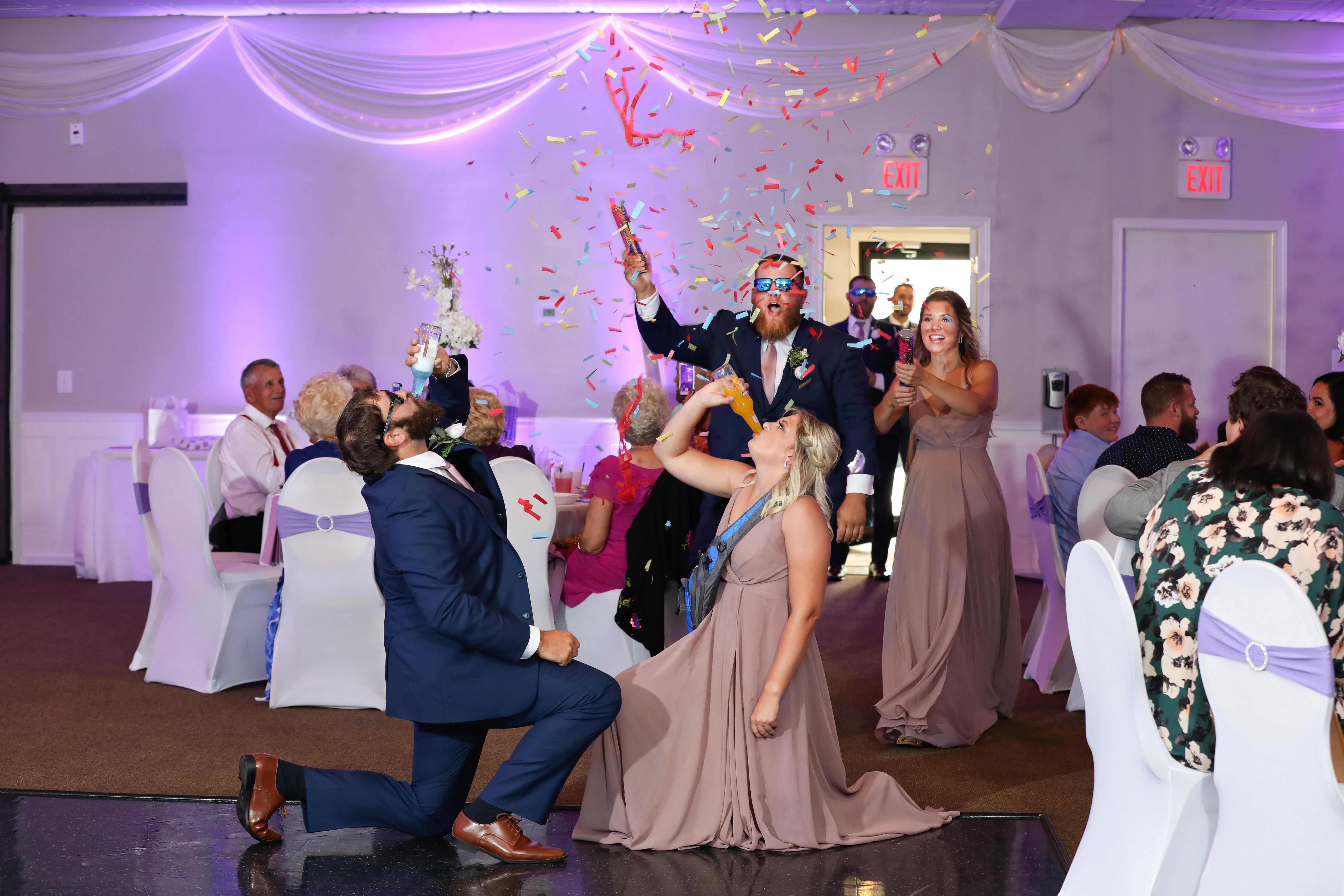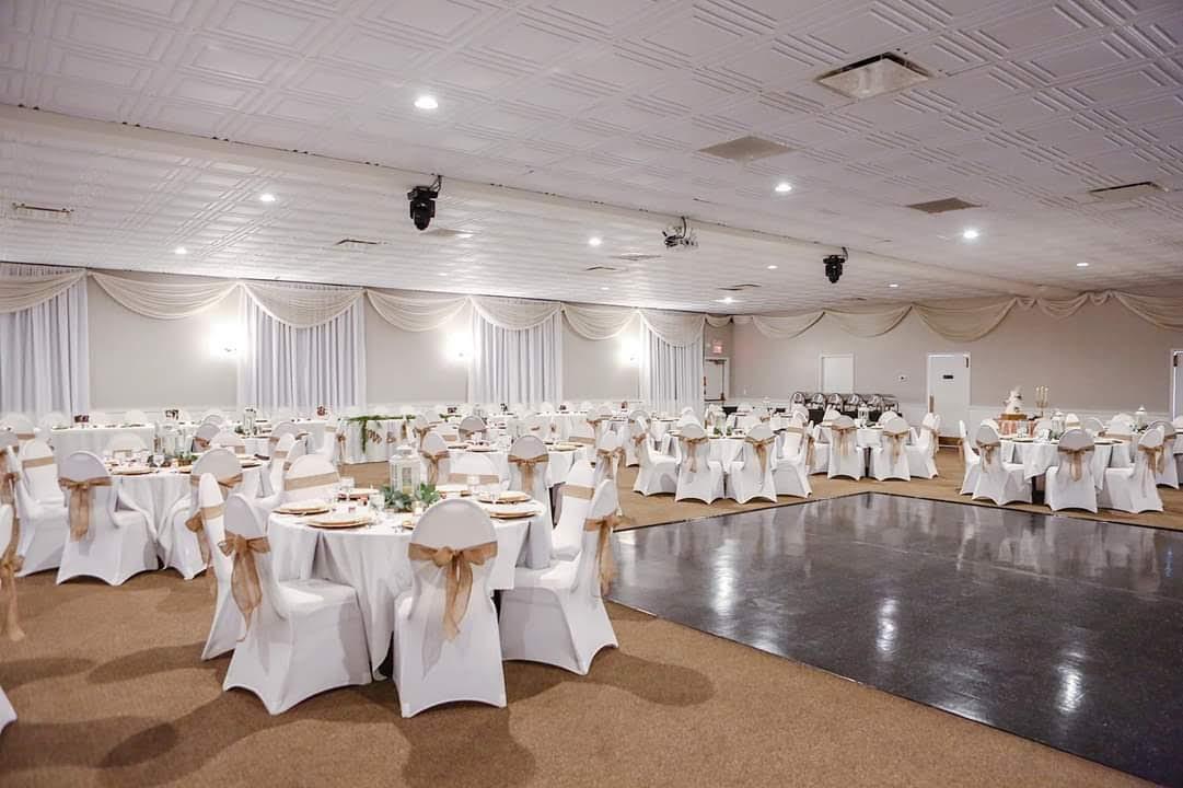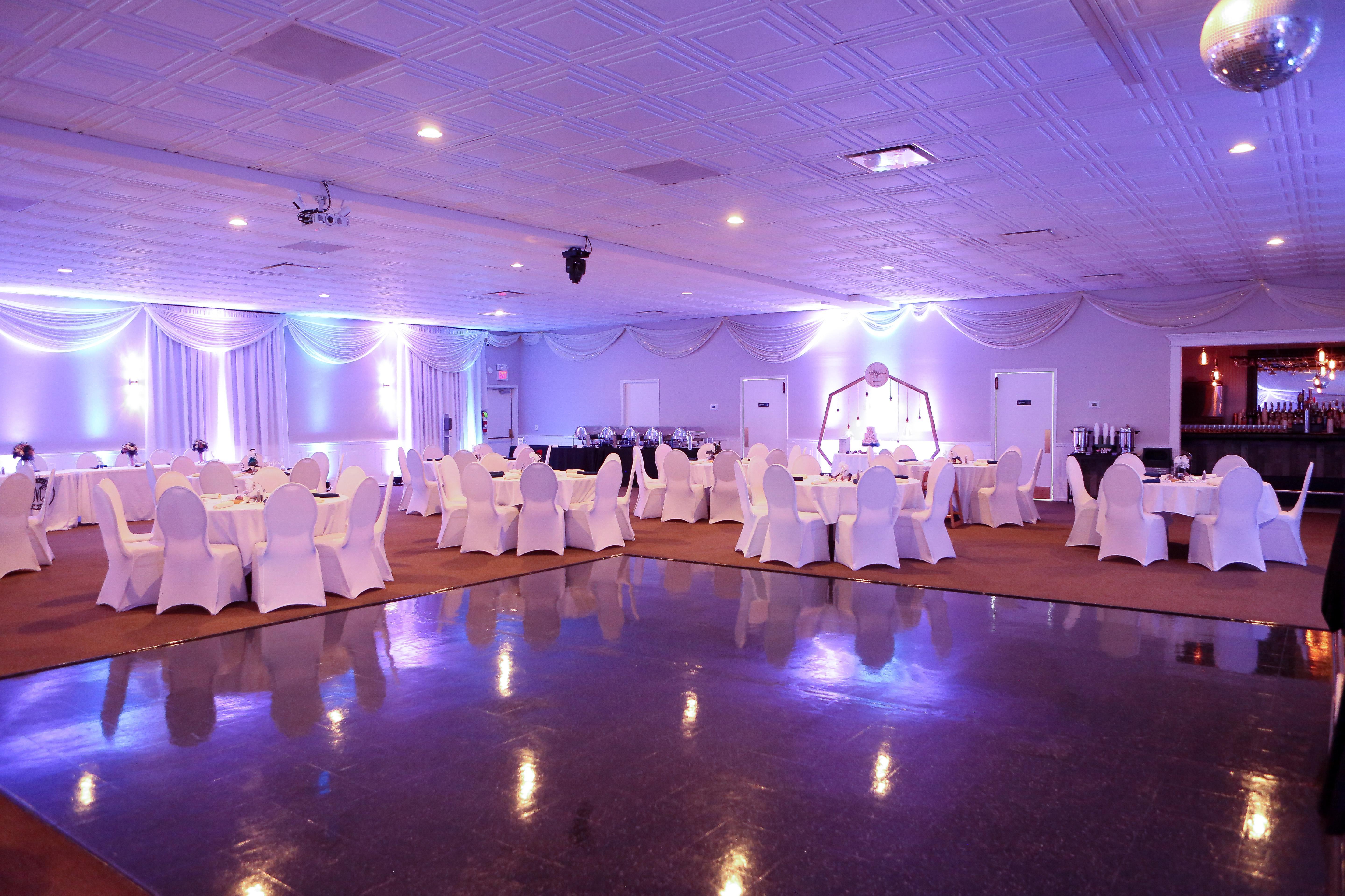 This space features a dedicated dance floor, lighting options, bar area, stage, bridal suite, and seating for up to 250 guests!
