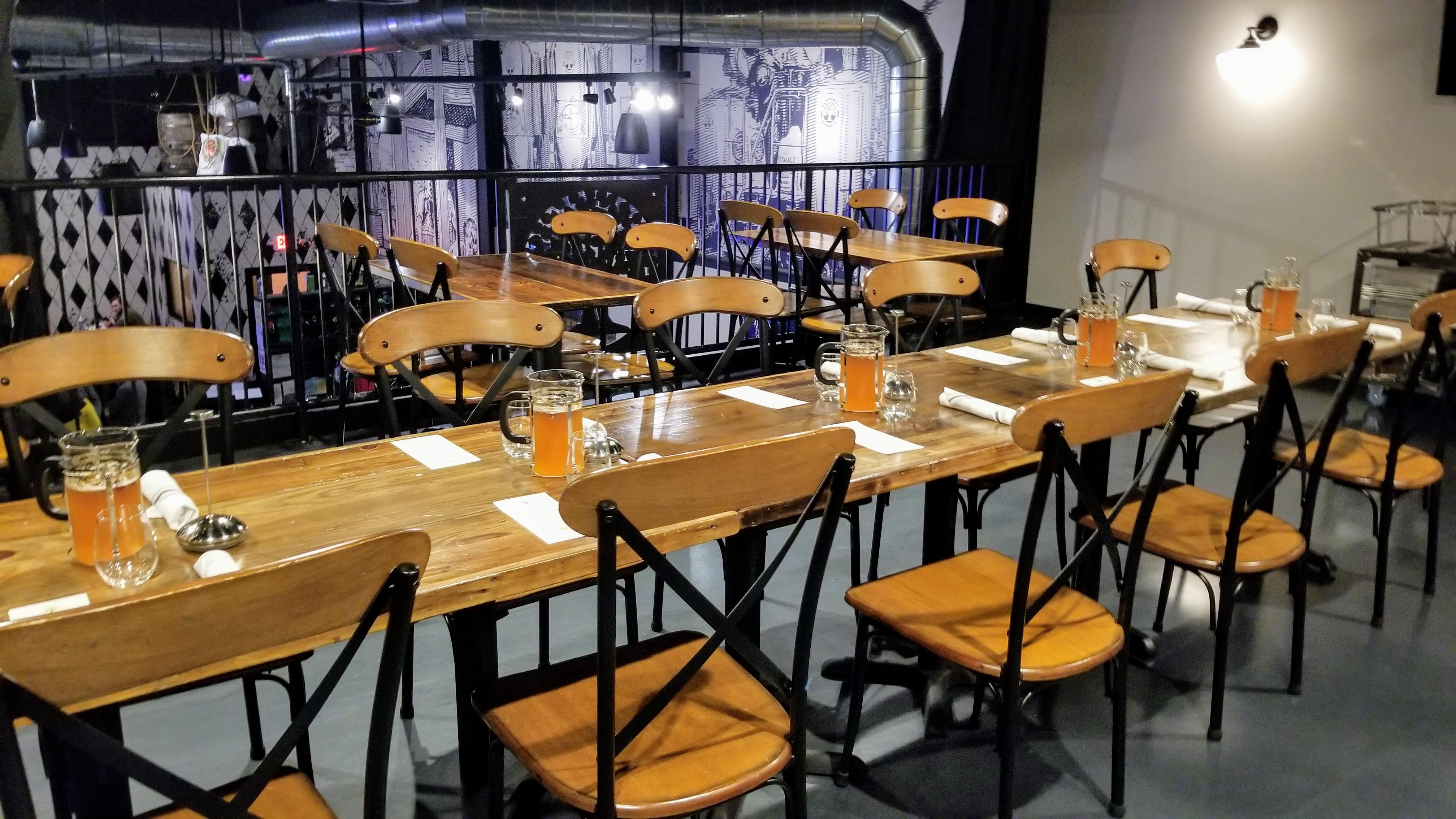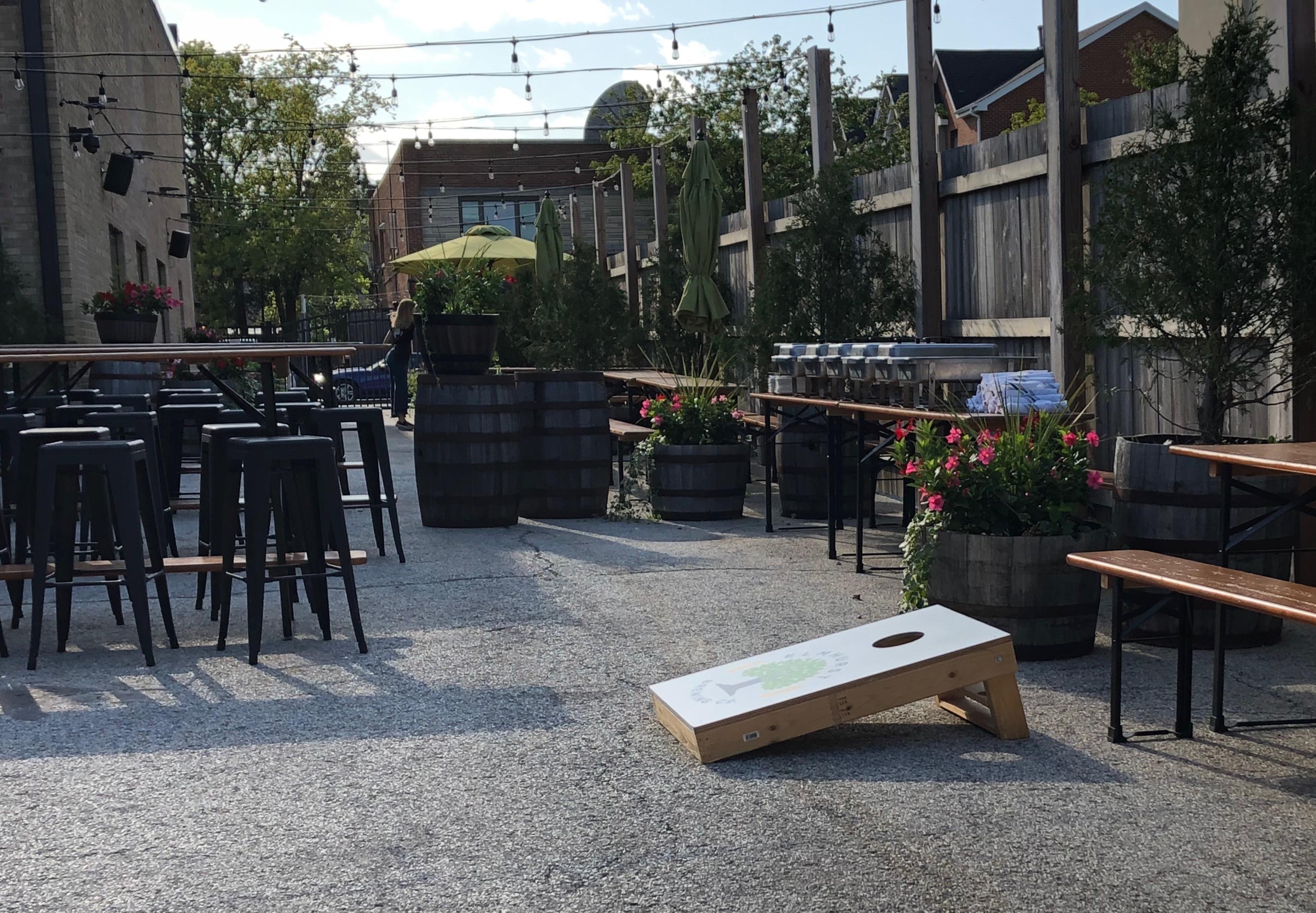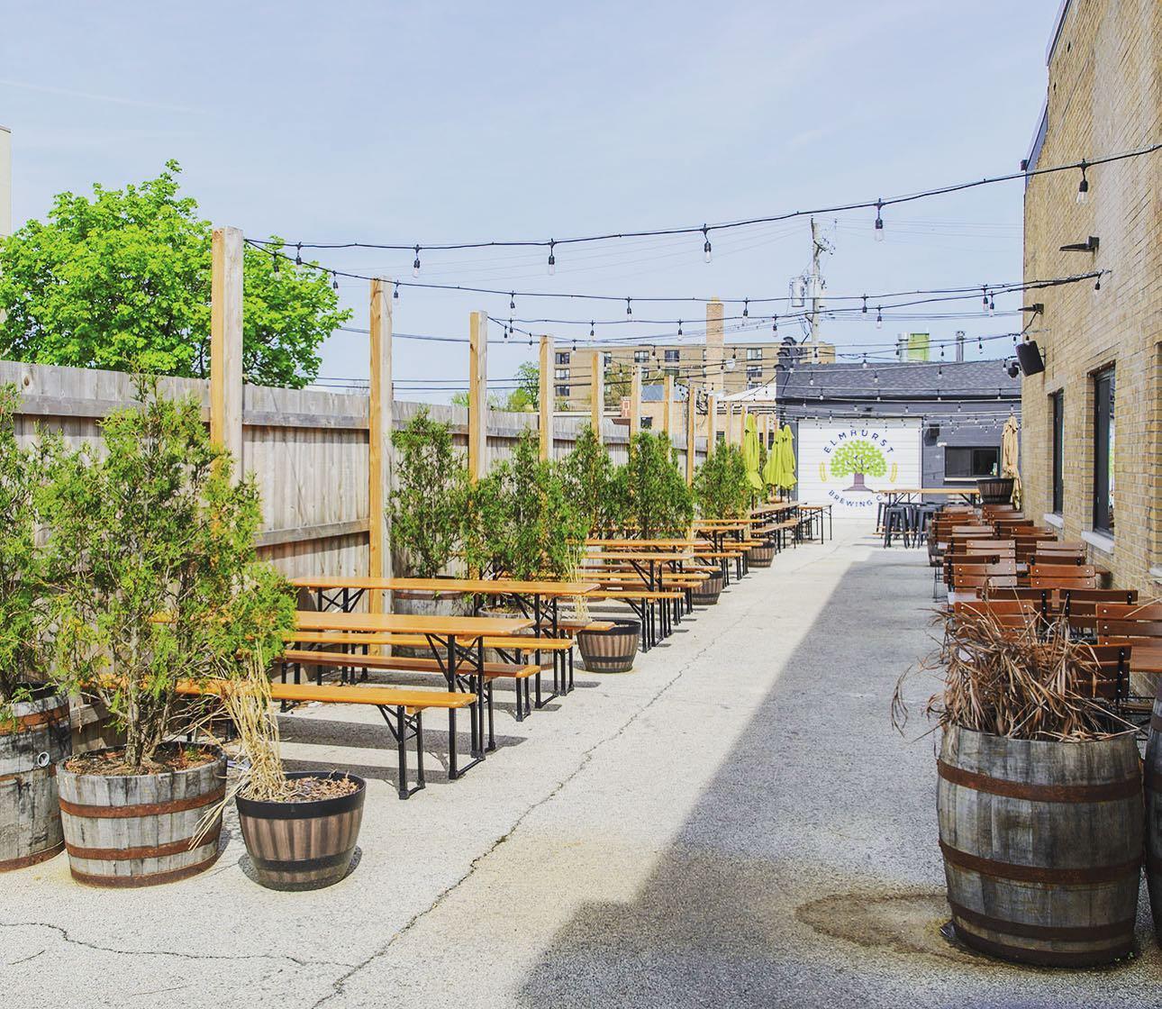 A short walk from the Elmhurst Metra station, our industrial and lofty yet comfortable brewpub offers a stunning mezzanine with its own private bar that overlooks the pipe works and stainless steel serving tanks of the main floor bar. With full audio/visual capabilities, the mezzanine is ideal for presentations, videos, speeches and so much more. Outside, we boast the largest beer garden in Elmhurst, with Octoberfest-inspired, communal seating and an open area where guests can compete on one of two bag sets. Ideal for larger groups or as part of an indoor/outdoor package, our beer garden is the perfect setting for your guests to soak in the sun while enjoying our freshly brewed beer.