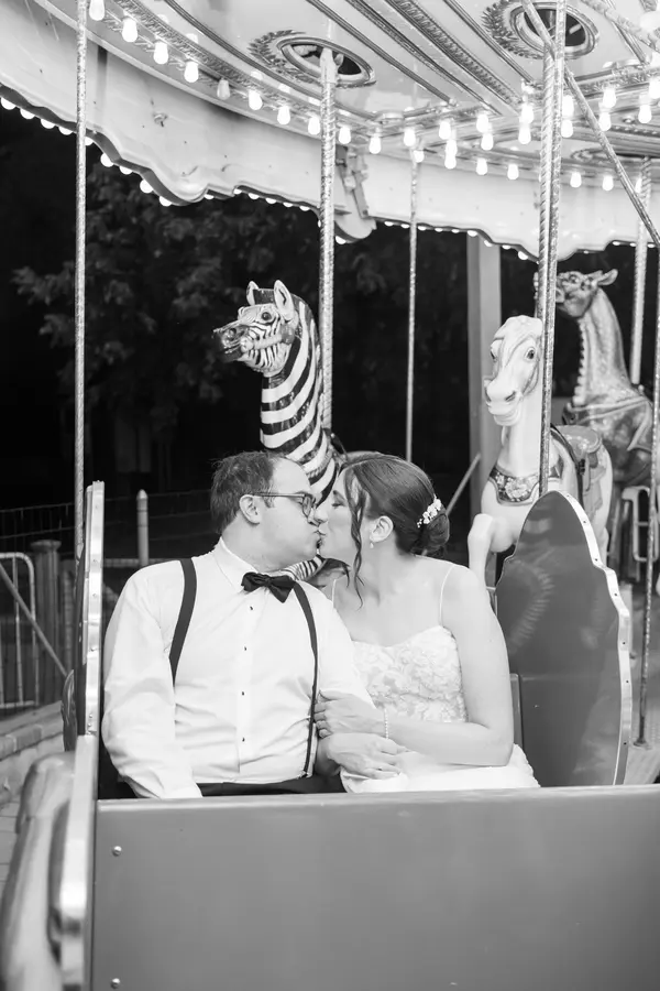 I cannot say enough good things about the Elmwood Park Zoo! My husband and I started our venue search knowing we were never going to have our wedding in a standard banquet hall or venue space. It was always going to be outside or somewhere unique. We fell in love with the zoo after touring it. The space is beautiful and well sized for the amount of people at our reception (75). Our guests absolutely loved it as well and still talk about it months afterwards. Torry was amazing in her communication and in helping me make decisions on the day of (yes, it rained…but let me tell you it did not matter one bit. If this is what you are afraid of, take the risk- their backup rain plan worked perfectly for us!) 10/10 for uniqueness, our guests got to walk the zoo, I love our carousel wedding photos (and our porcupine wedding photo!), and we even got to feed giraffes in our fancy clothes! The food and drinks were great, too….get that s'mores station, you know you want to!