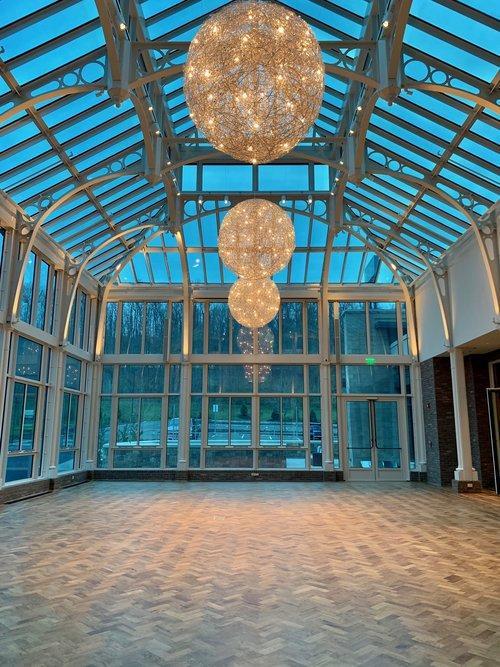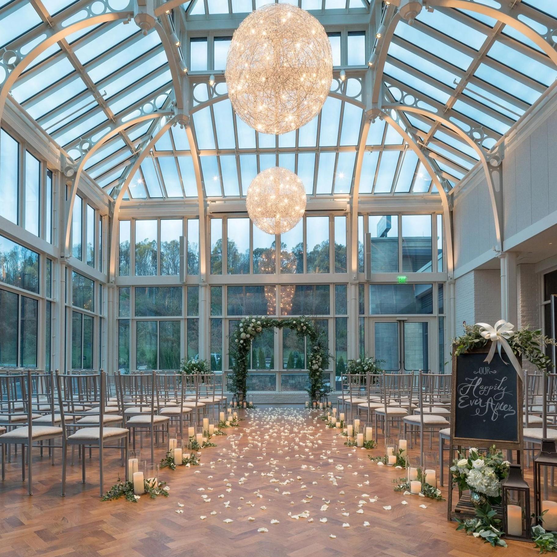 Our exquisite glass enclosed Solarium accented with crystal chandeliers and 20-foot ceilings provides an ideal setting for your special day.