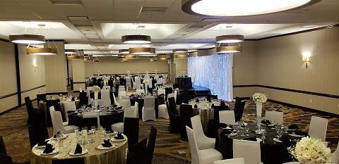 This space features 5400 square feet of indoor space. This is a beautiful newly renovated ballroom with 13-foot tall ceiling and modern dimmable chandeliers offer a pleasant ambiance. Enhance your event with up-lighting and white chair covers to give a "wow" effect.