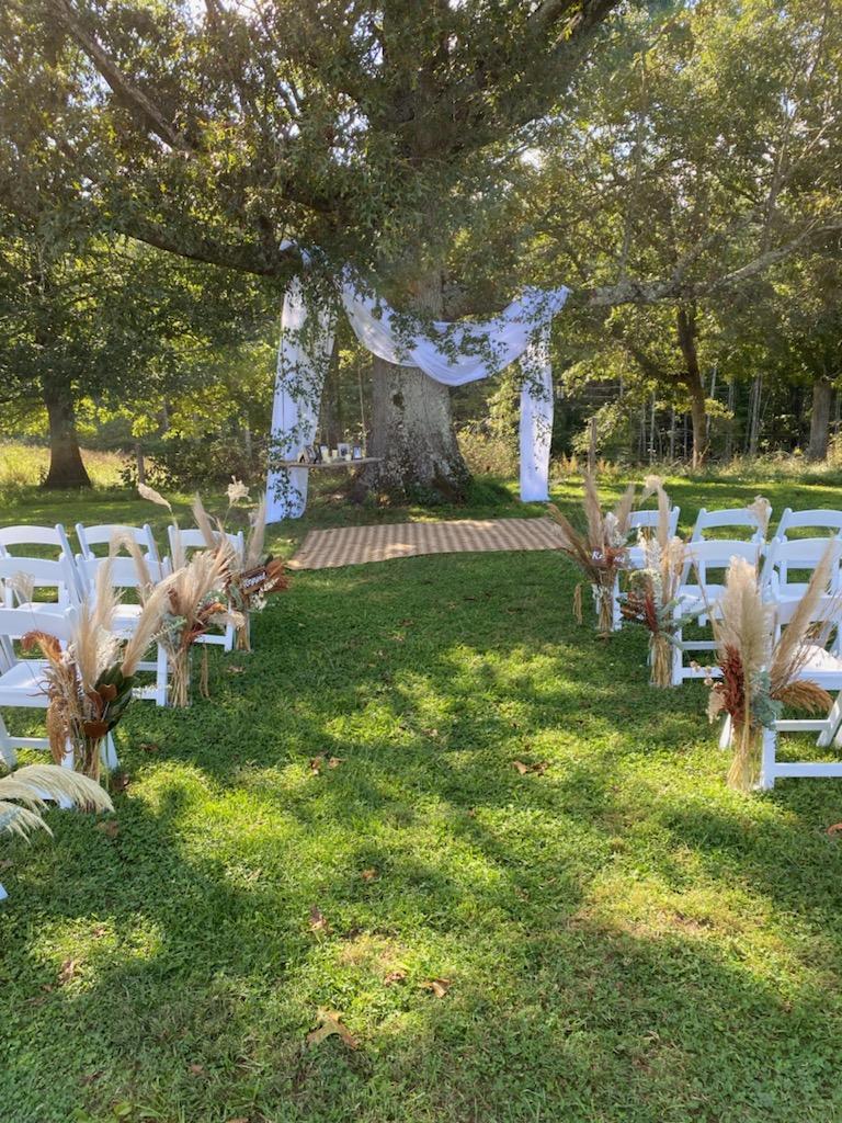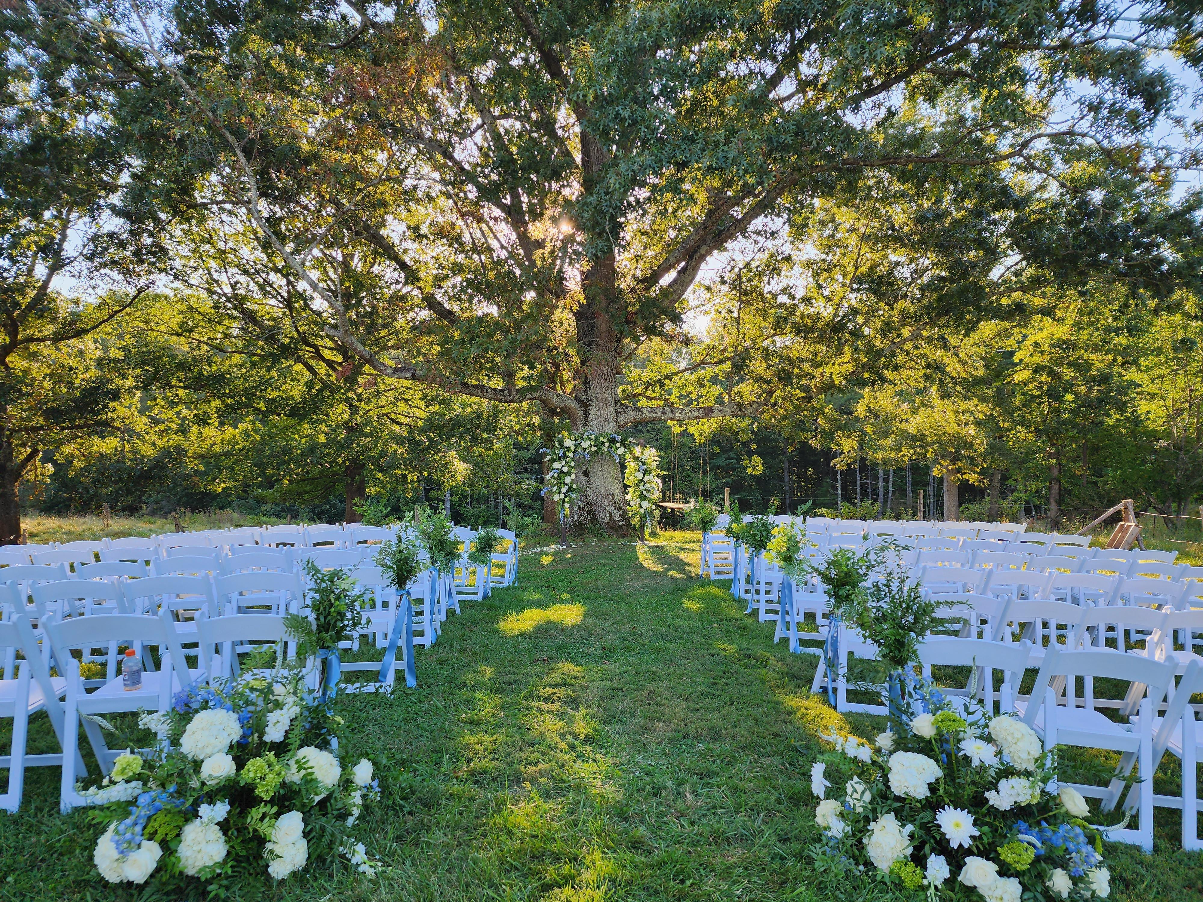 The area has a tree overlooking your perfect ceremony and your guests. A perfect setting for a perfect day. With the setting sun filtering through the tree, you and your guests are shaded. Bonus - great backlighting for your ceremony photos.
