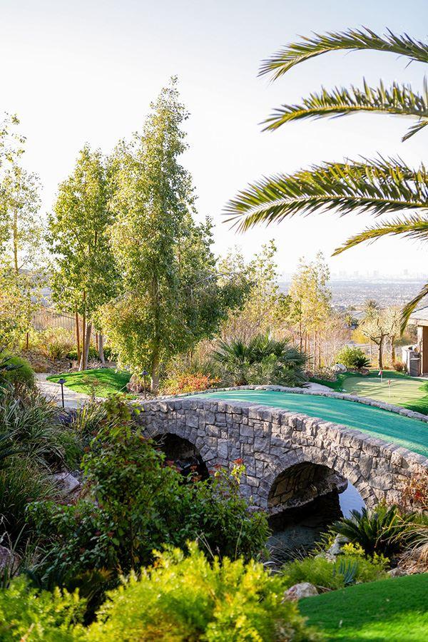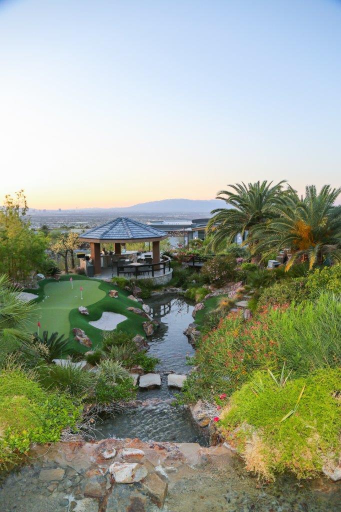 Built-in Bar, (2) Poolside Cabanas, Exterior Ambiance lighting throughout the property, Main BBQ Pavilion with Seating, Hidden Hilltop Firepit Area with Seating, City Lights and Strip Views, Fabulous City Lights and Strip View, Golf Tee with Sand Traps, Underground Wine Cave for Private Dinners & Tastings, In-House Catering and Beverages.
