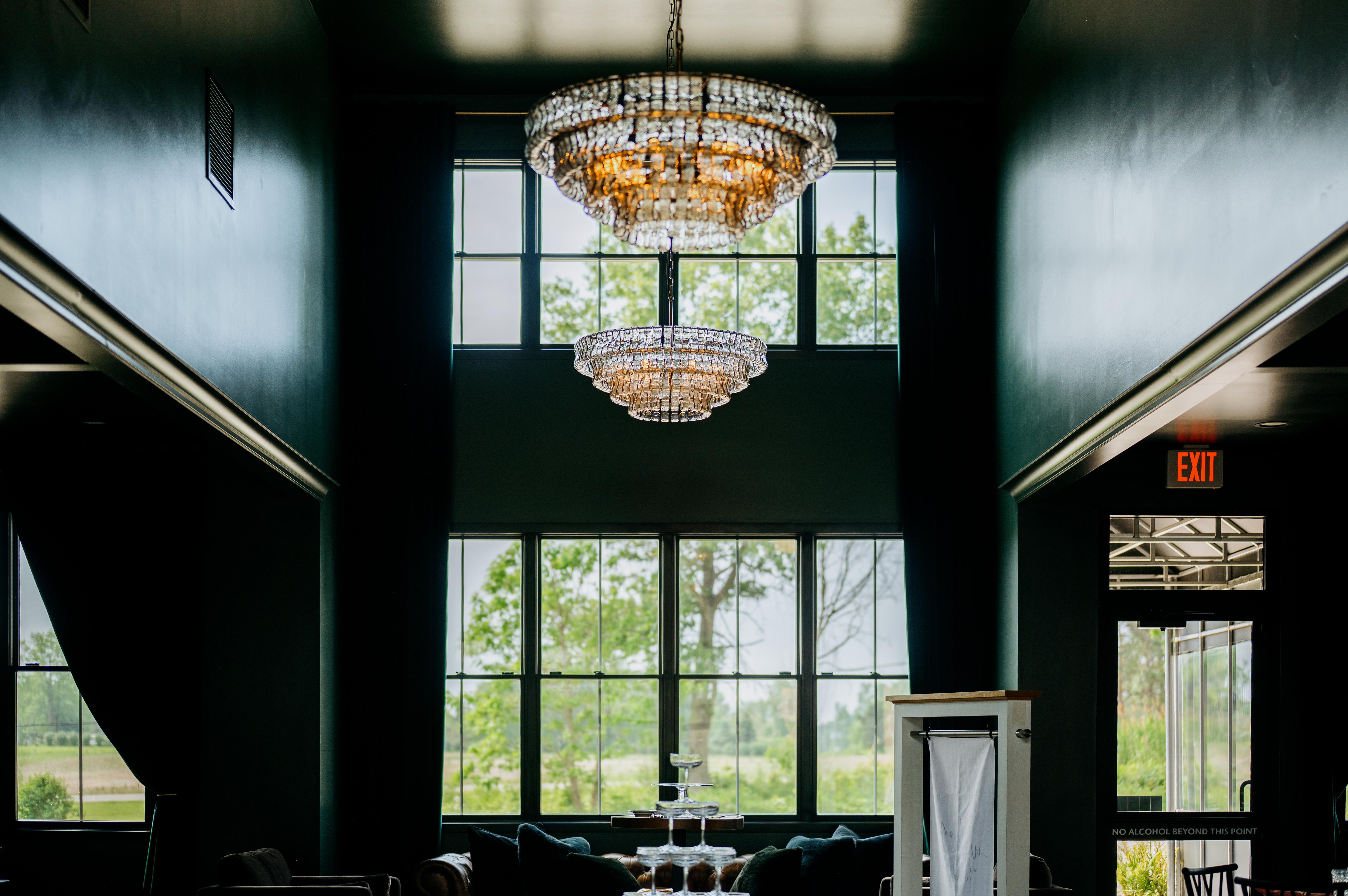 The Emerson Lounge Space: - Full Service Bar (Bar has custom glass racks quartz counters, and room for 2-3 bartenders) - 3 Chandeliers & canned lighting (All lights in the space are dimmable) - Space comes with rounds and black back chairs (The best part is our team will set up these items for you!)