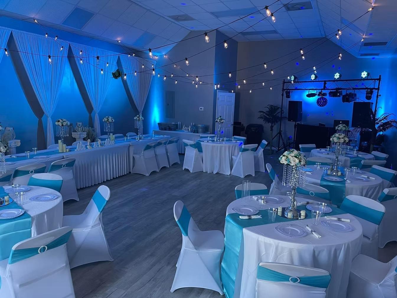 Our Little Enchanted Reception Hall offers a cost-effective venue for gatherings of up to 50 guests. Ideal for intimate weddings, birthday parties, baby showers, reunions, and other special events. We also offer a Ballroom Reception space for larger celebrations of up to 120 guests.