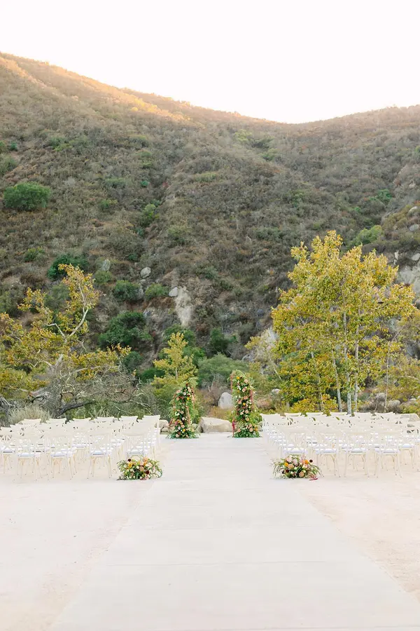 Breathtaking ceremony site in the middle of nature, surrounded by views of grand rolling hills.