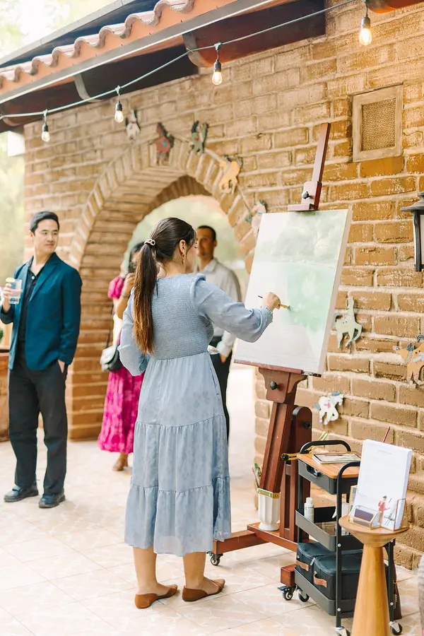 This historic adobe home designed by the Weir Brothers, offers a charming backdrop for unforgettable weddings and events. With its elegant architecture and timeless details, the entire house is available exclusively on the day of your celebration. Couples will enjoy the luxury of a spacious bridal suite, perfect for getting ready in style and comfort, as well as a secondary getting ready suite. Guests can enjoy a cocktail hour on the wraparound patio, with views of the gazebo and pond.