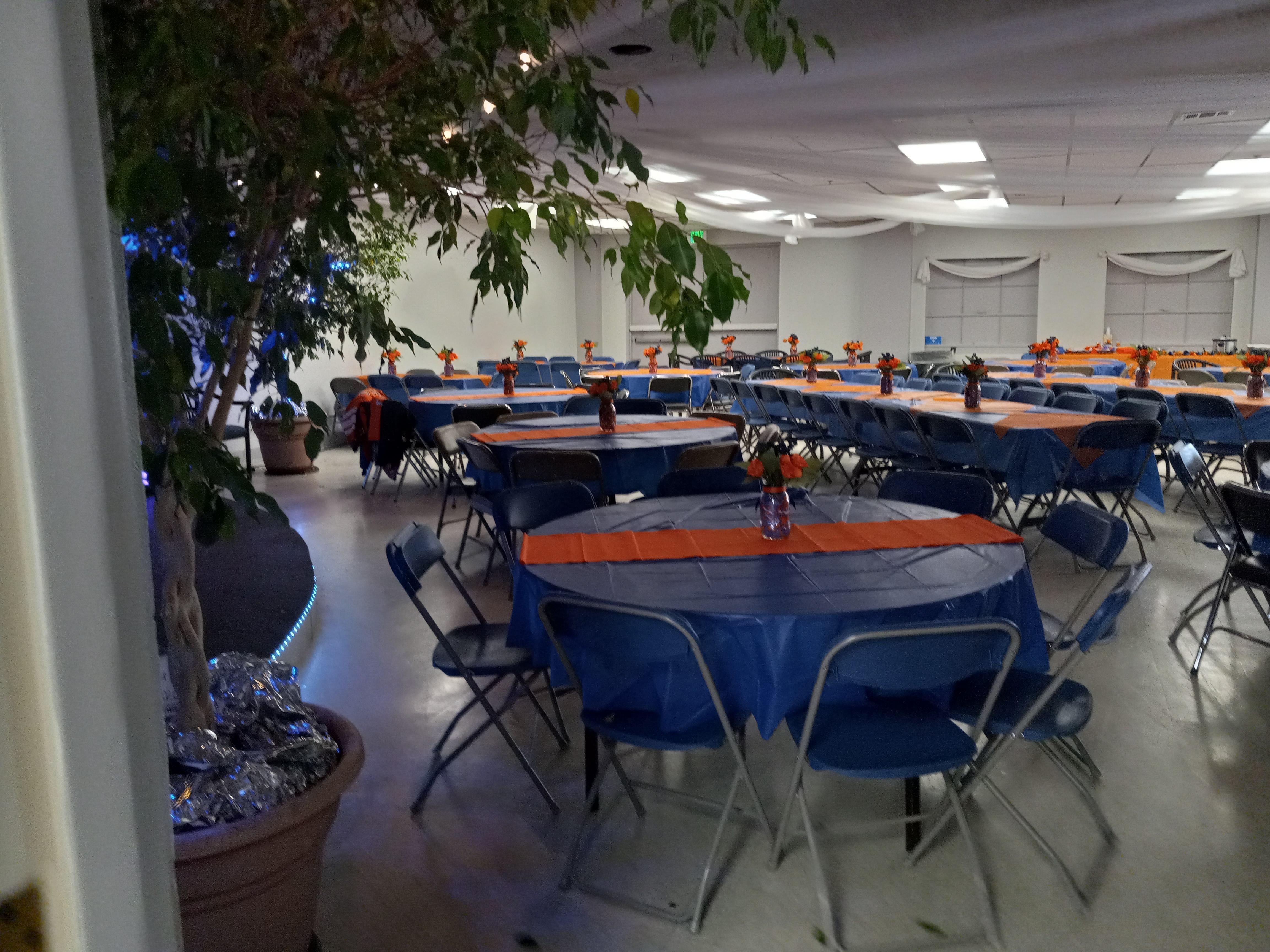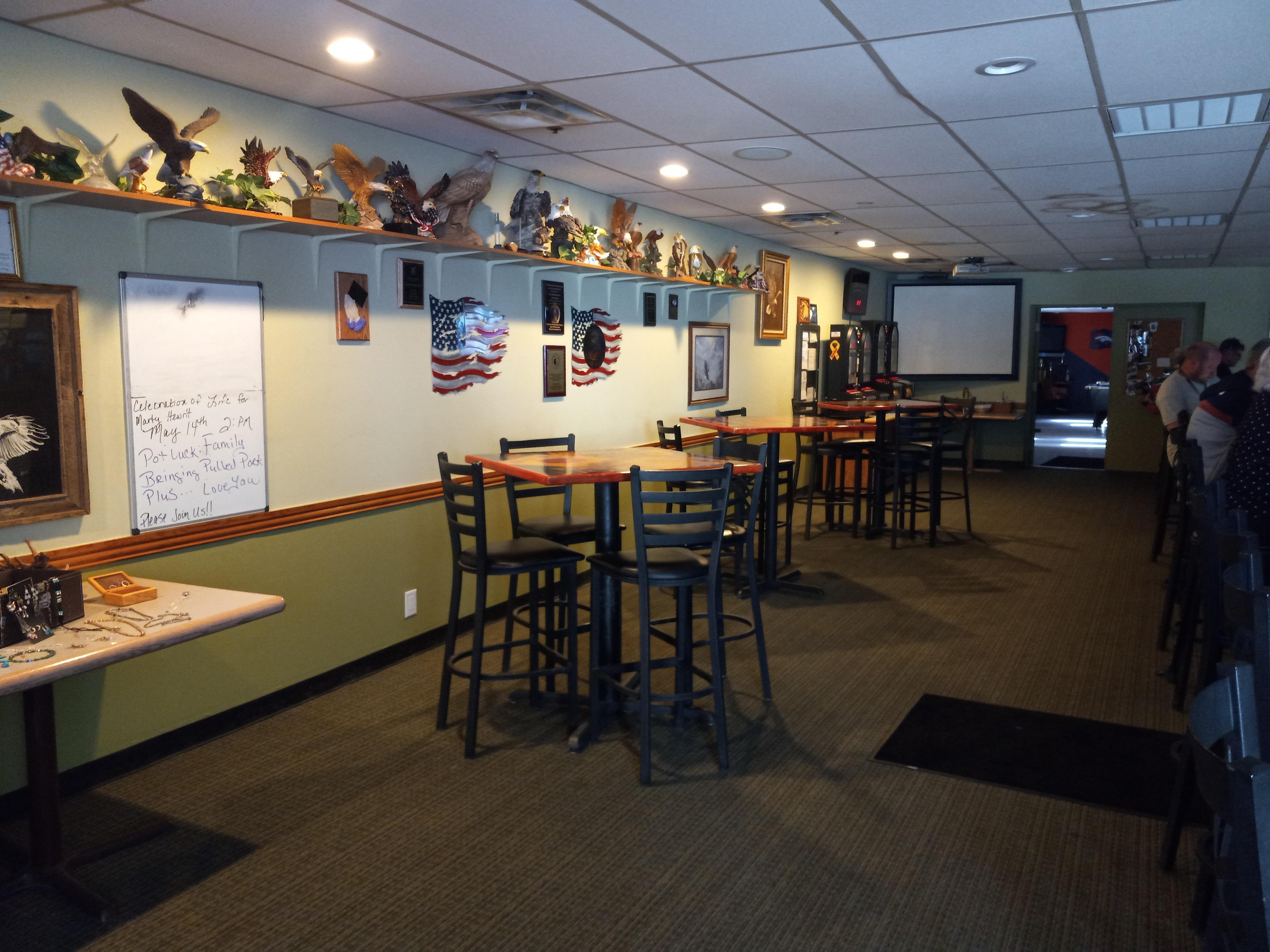 Tables, chairs, refrigerated buffet, food warmers, dance floor and stage with lighting and sound, multi media projector, high speed internet, outdoor patio with BBQ, firepit, lighting, 2 full bars, pool tables, pinball, darts, video bowling and too much more to list.