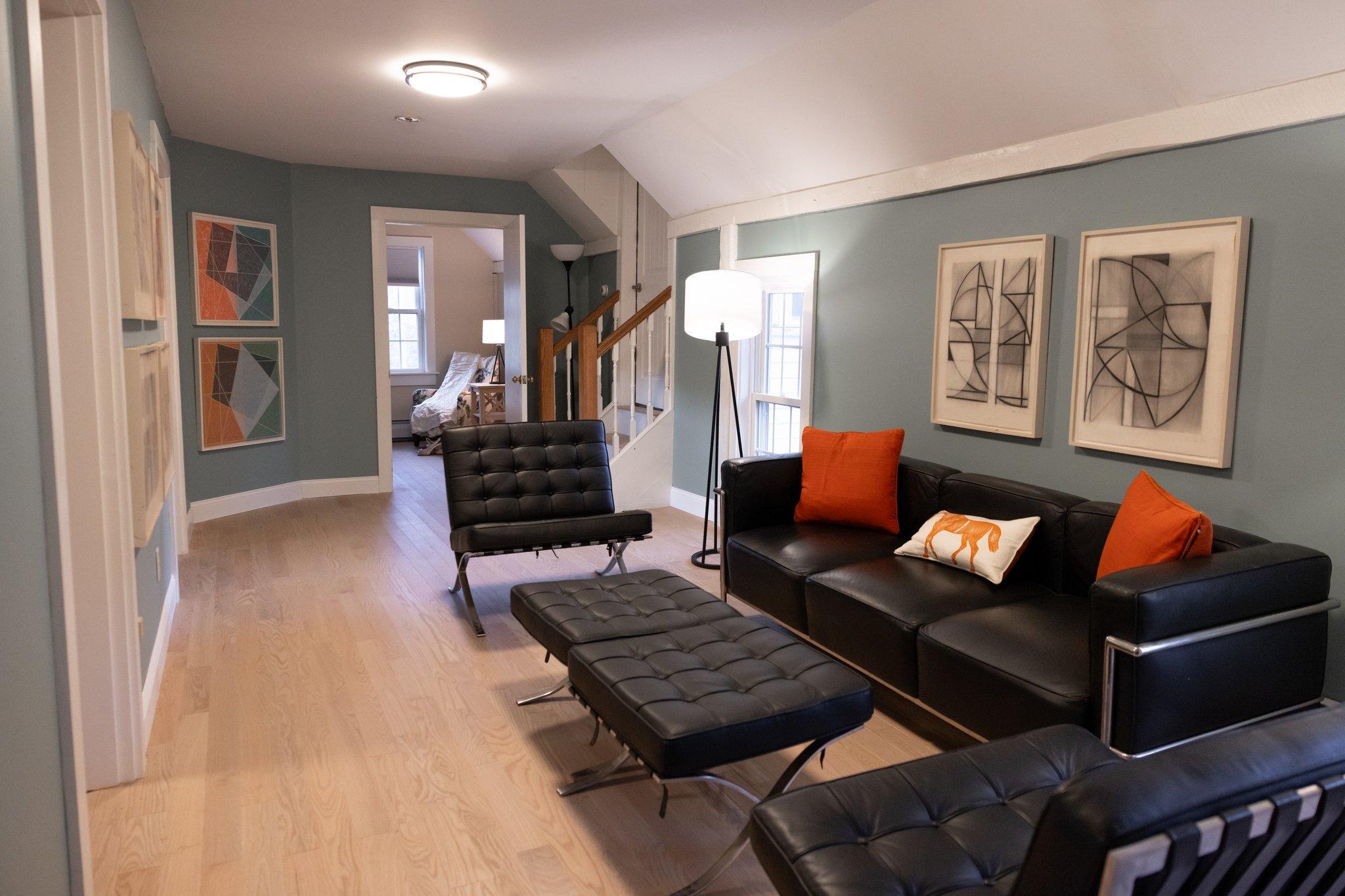 A small but impeccably decorated studio apartment is available for the weekend with your booking. It has a full kitchen, AC/Heat and comfortable furniture. It is connected to the antique barn and has a grand staircase up the back side with a small deck that has a view over the adjacent horse barn, stables and fields.