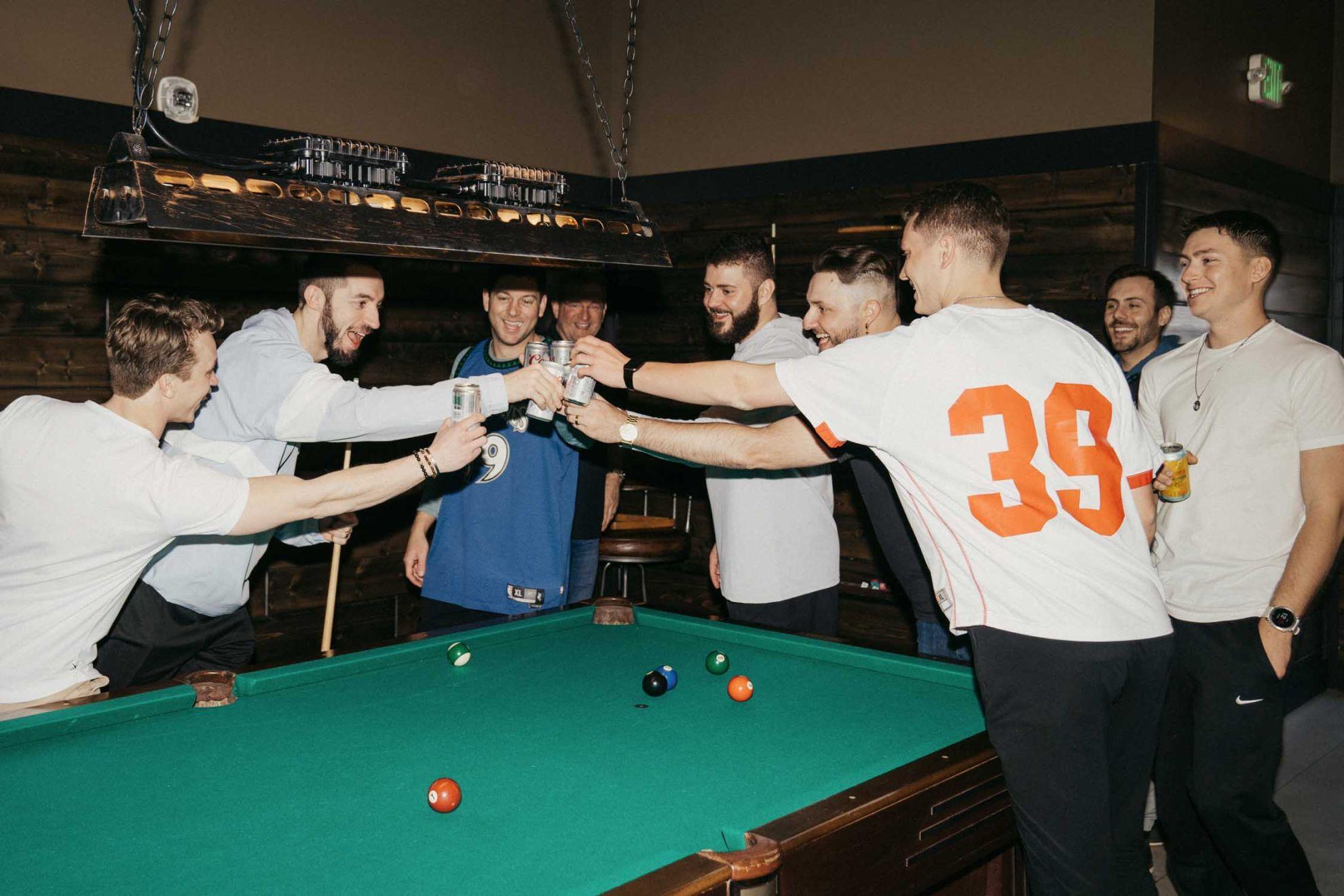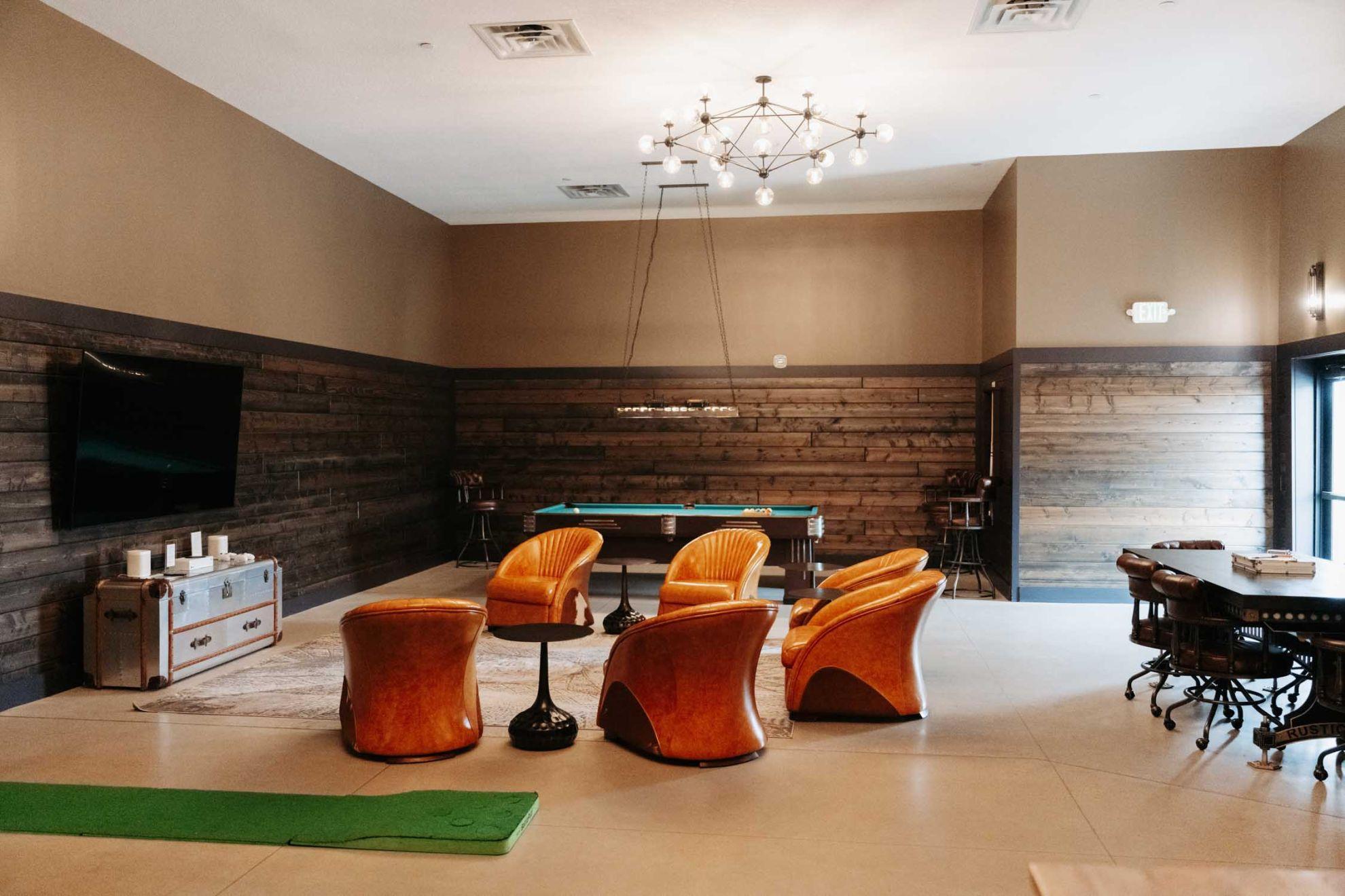 It’s best described as a cross between a hangout space, polo club, and European pub. Dark wood and deep tones give it a signature look. With inclusions such as worn leather club chairs and a card and pool table, the guys will have a place that is truly their own. This handsome suite would not be complete without its barbershop grooming area, which provides the groom with a space to get pampered as well.
