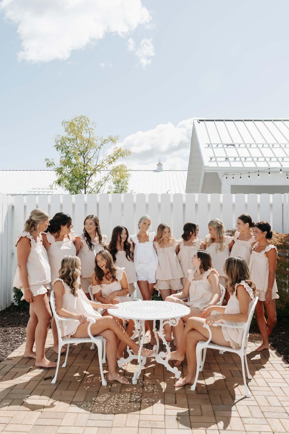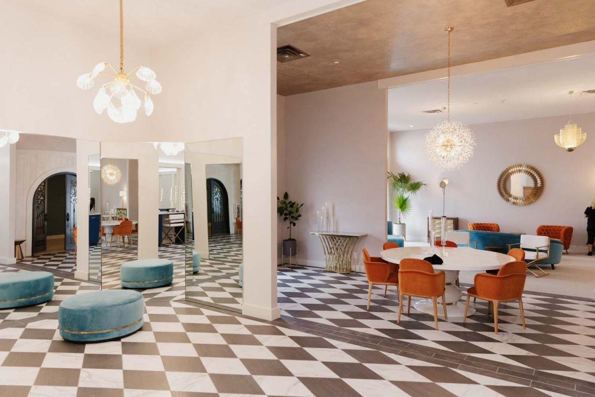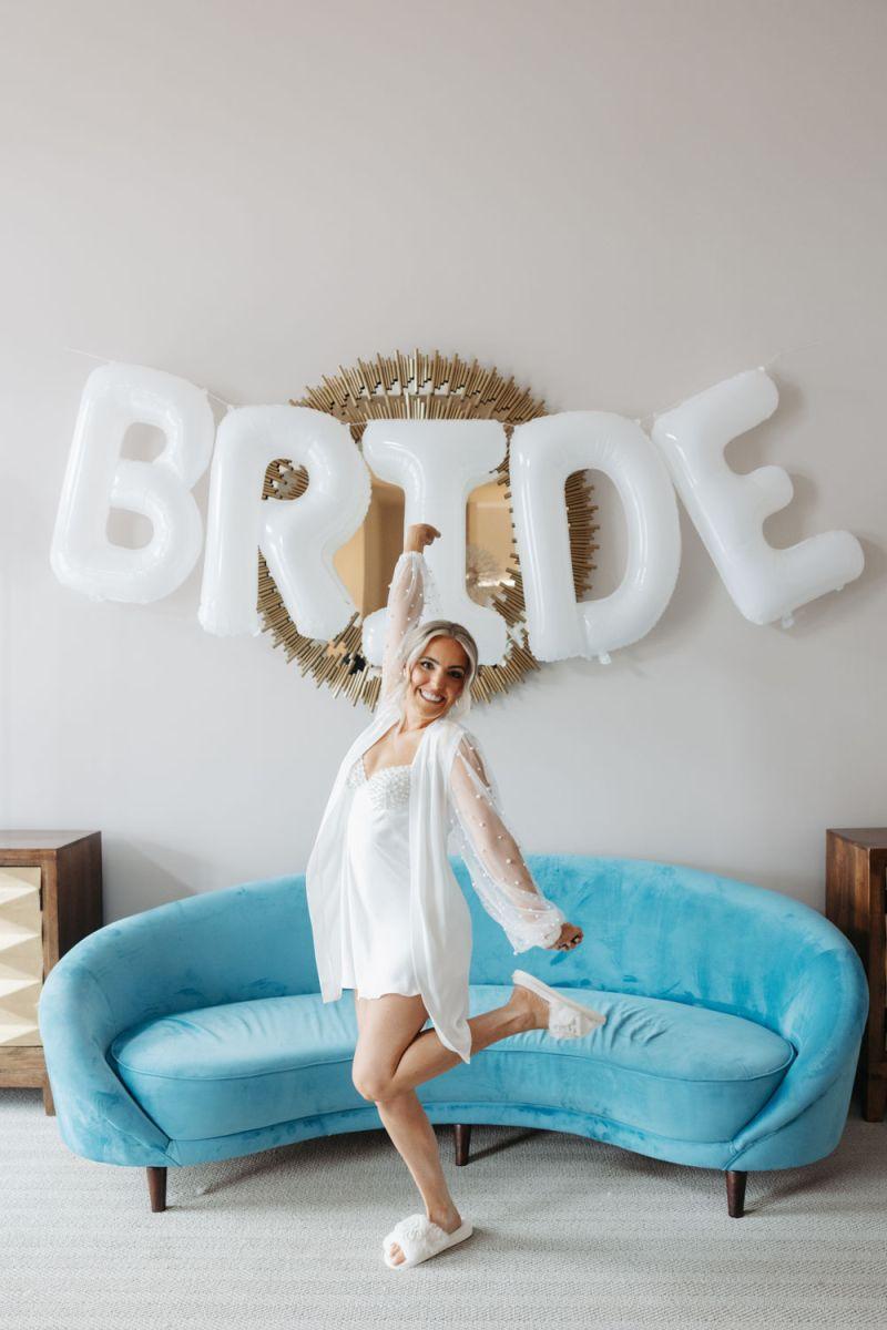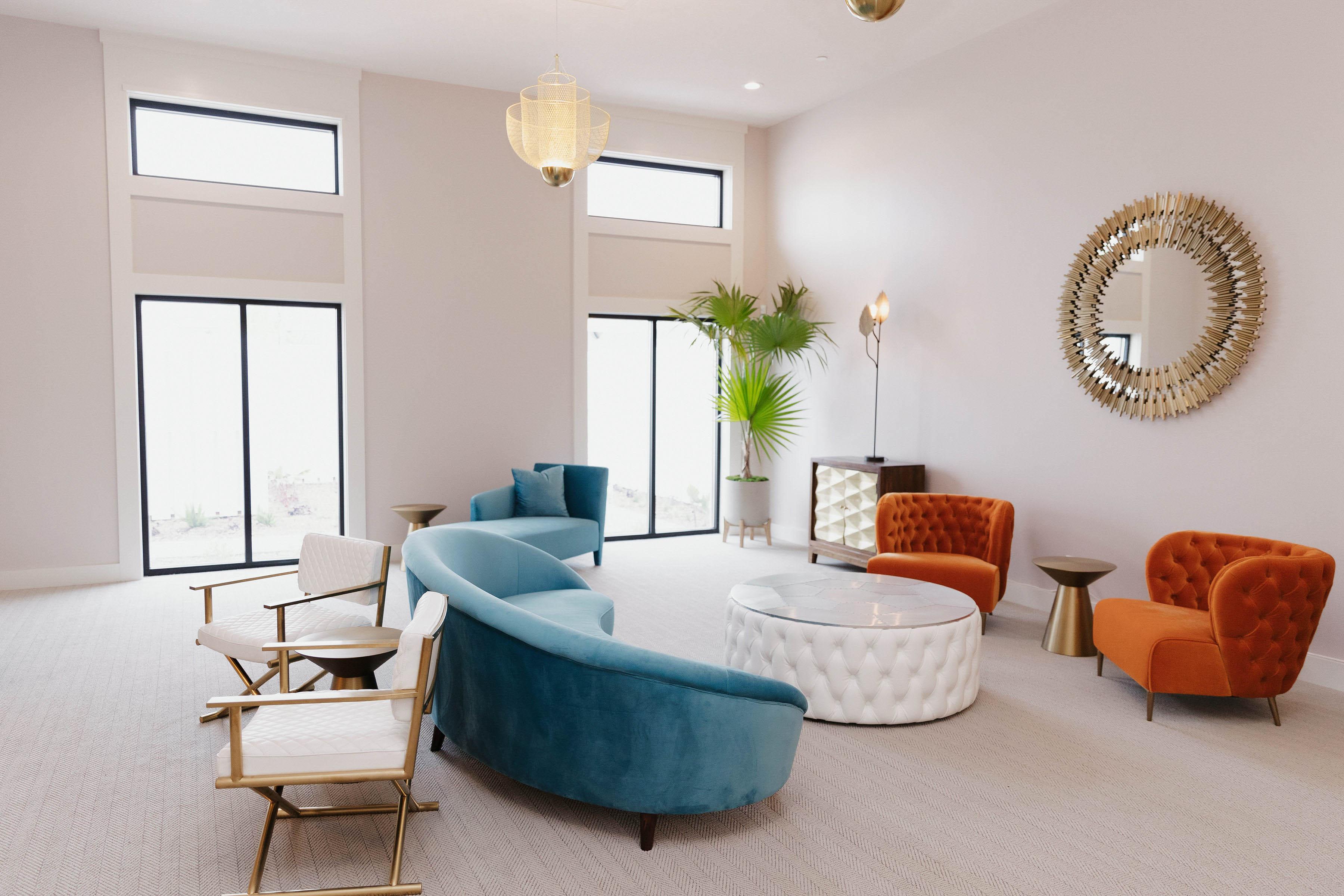 The suite offers plenty of space to get pampered with all your favorite people on your special day. Contemporary furniture and light fixtures create an elegant ambiance with style. A wall of mirrors engulfs the make-up area for the perfect getting ready space. There is also a small private patio set right outside of the suite, which allows for a nice secluded area for some peace and serenity before the big day.
