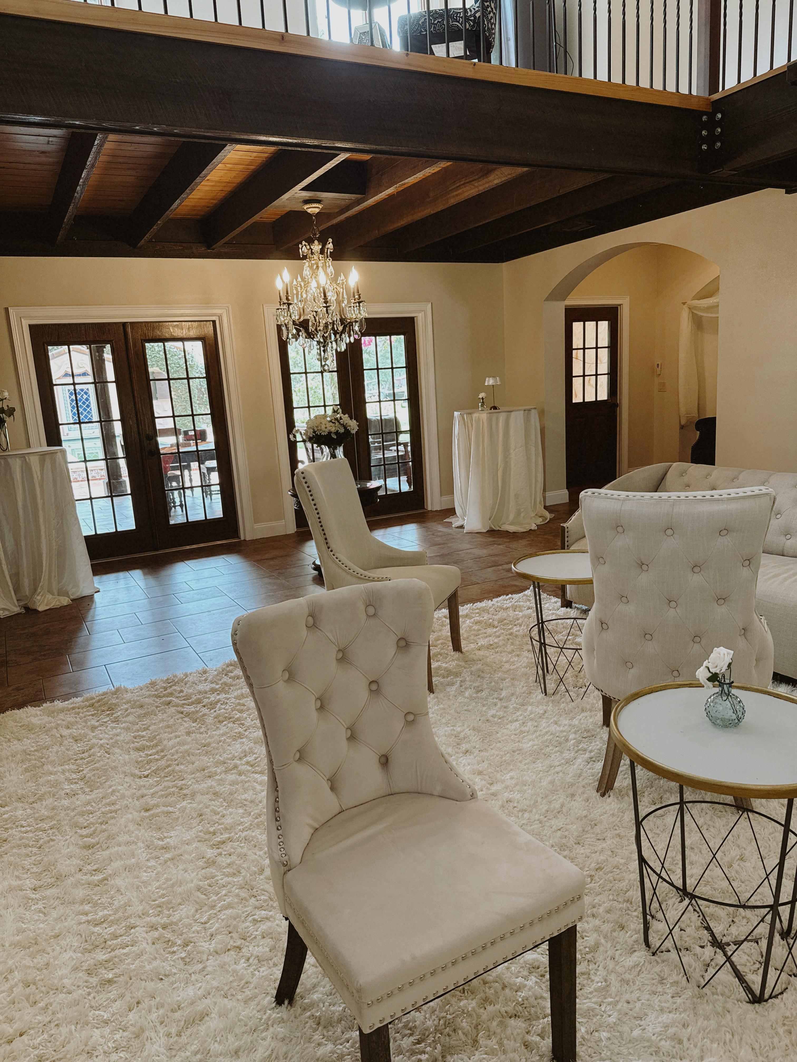 This space is fully furnished for a comfortable lounge setting for your guests to enjoy cocktail hour. This space also has a unique loft area where your guests can mingle.