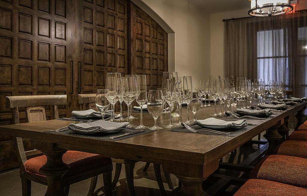 La Sala de Vino (tasting room) with its cool plastered walls, towering ceiling at 28’ and impressive bar space can be utilized, additionally, as an event space. The location of La Sala de Vino allows you to expand to the Gran Reserva and the Gran Reserva Patio (members tasting room-1468 sqft,) or to utilize with La Plaza (2268 sqft.) or simply by itself (1700 sqft). This allows you the flexibility to design an event that is exclusively yours with the space to handle your guests in comfort and style.