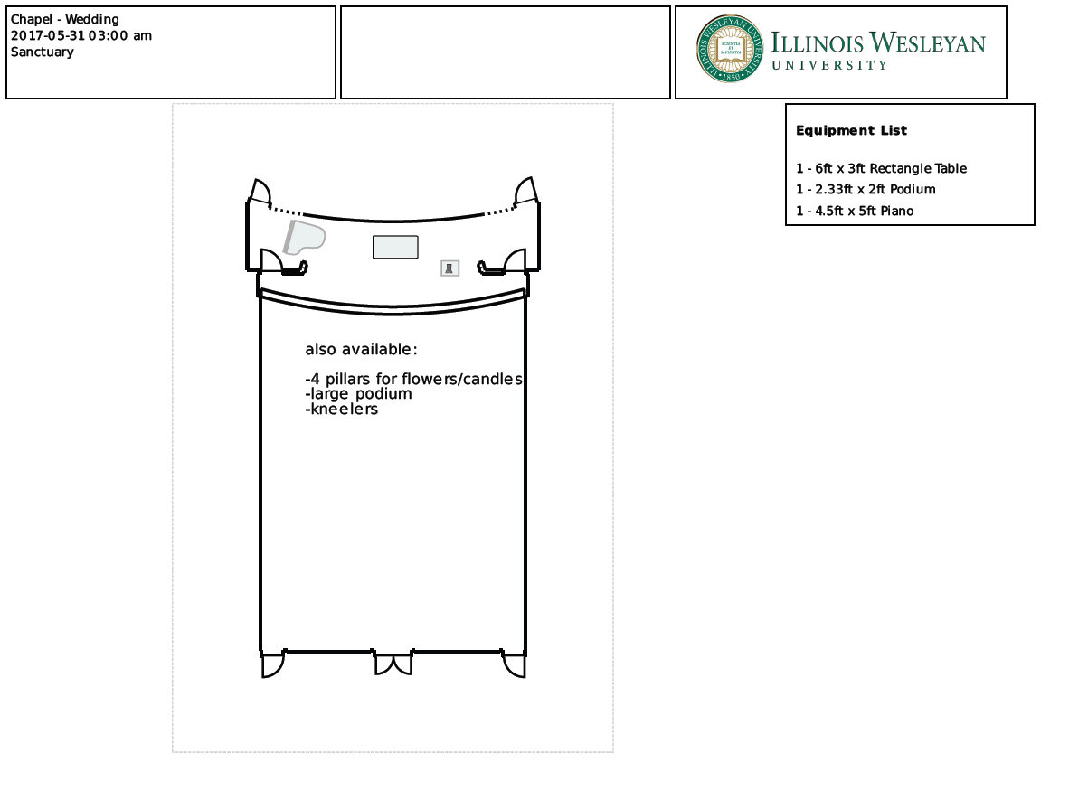 -Liturgical items such as white tapered candles, pedestals, etc. -University musician -On site Wedding Coordinator to answer questions months leading up to the event, as well as assisting during the rehearsal and ceremony in regards to seating, procession, lighting, and anything else.