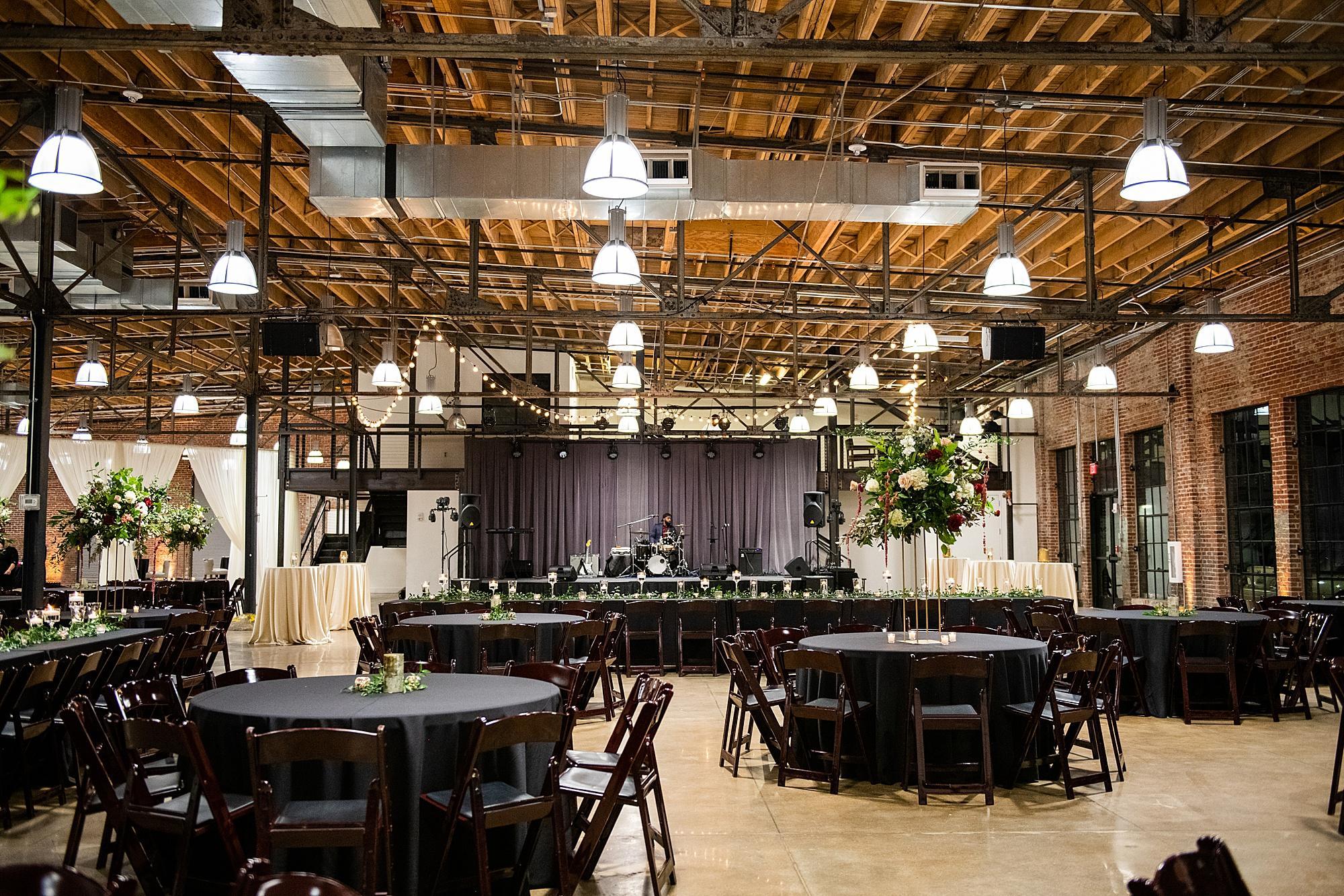 EVENT SPACE FEATURES 20,000 sf available for larger events, or the space can be partitioned with pipe & drape to create more intimate spaces for smaller events Beautiful, permanent bar and bar services Full service, in-house audio/visual services, including 12’x24’ stage, with professional stage lighting, and an onsite A/V Director during your event Bridal suite/green room with private space for dining and private restroom Natural light created by large windows and skylights