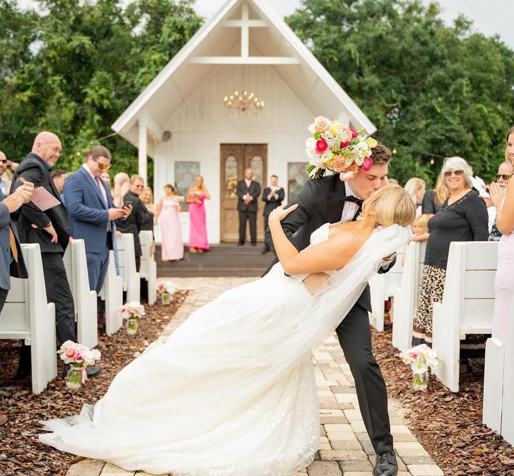 Your fairytale wedding awaits at this breathtaking luxury white wedding barn amidst a vineyard-like field of blueberries. As seen on Good Morning America, and awarded one of the top 15 most romantic venues in the US. Couples love our affordable inclusive pricing, friendly responsive staff, and stress-free experience. Your event will leave your guests talking about how incredible their experience was for years to come. The venue itself is equipped with stunning decor, full AC/Heat, and so much more. Exchange your vows in your choice of two incredible ceremony options; stunning 120 year old oak tree or our intimate chapel surrounded by the blueberry fields. Capture timeless photos at our "Notebook" boat with reflections of the water, flower vine tree swing, restored 1955 Studebaker truck, and Cinderella Carriage. Schedule a tour today and experience for yourself this incredible wedding venue. Your dream wedding awaits at Ever After Farms Blueberry.