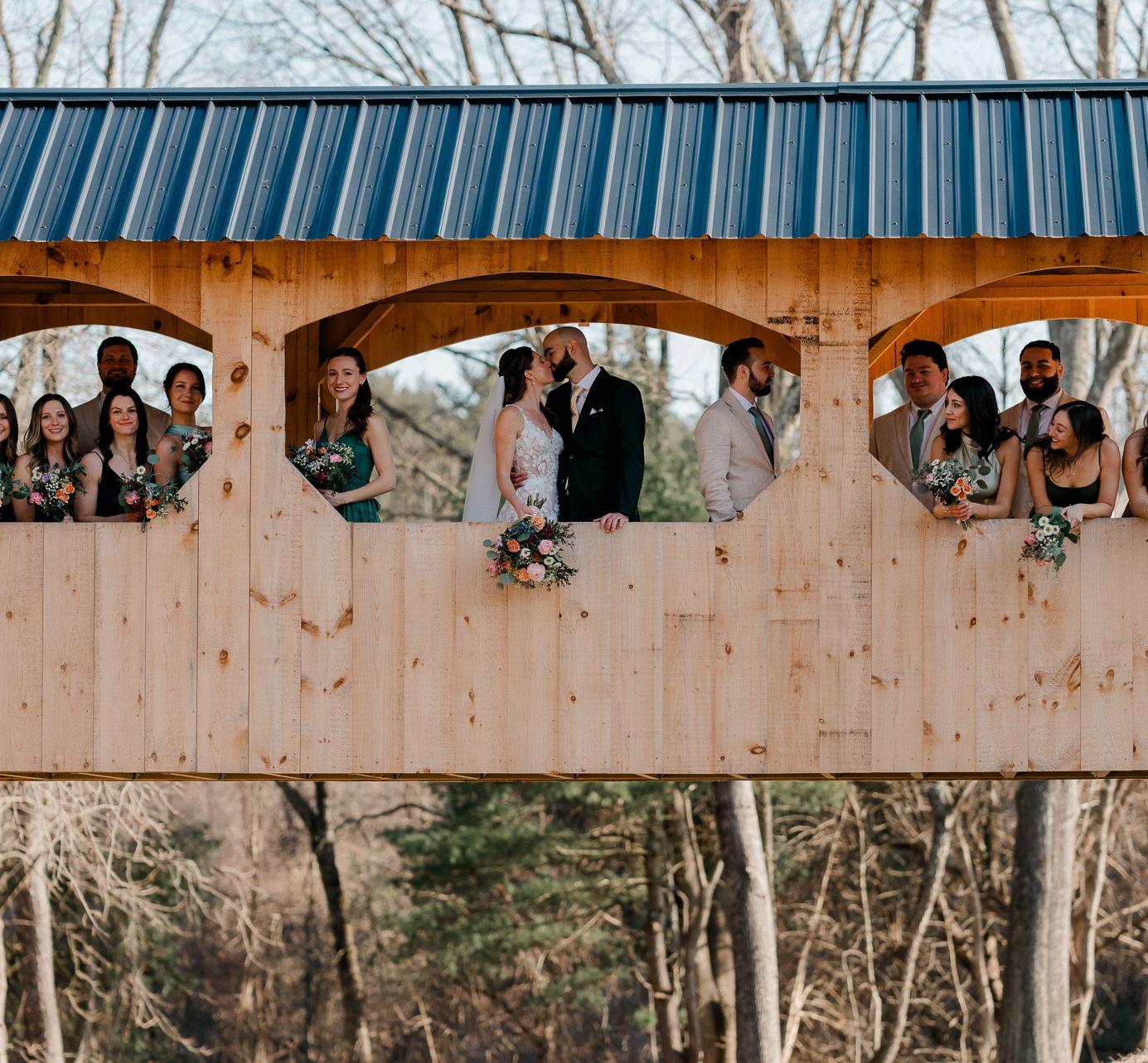For your reception, guests will be awed by the hand-crafted historic barn, affectionately known as the Coop. Initially built in the 1950s, the Coop offers both indoor and outdoor accommodations for your special day. The first floor boasts a spacious dining area with hand-made farm tables and chairs, an accessible dressing room and sitting room, restrooms, a bar, and a catering prep area. The second floor features a balcony, two suites, a lounge, and an additional bathroom.