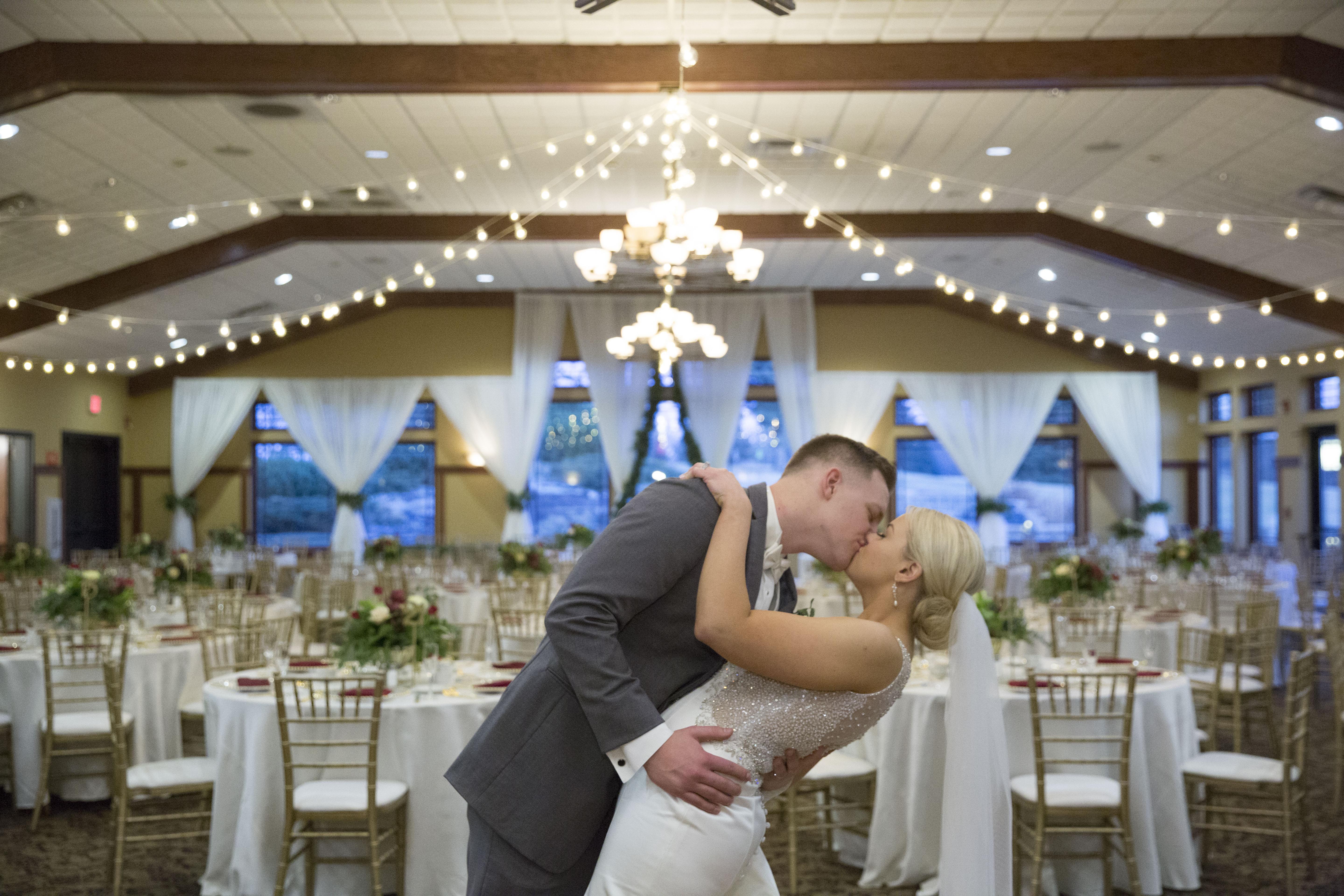 This space features 15 ft. vaulted ceilings, expansive windows overlooking a beautifully lanscaped waterfall and our 27-hole golf course, along with enough space to comfortably seat 250 guests for your reception. There is an ajoining pub bar and a large outdoor patio that can also serve as a beautiful backdrop for your ceremony.