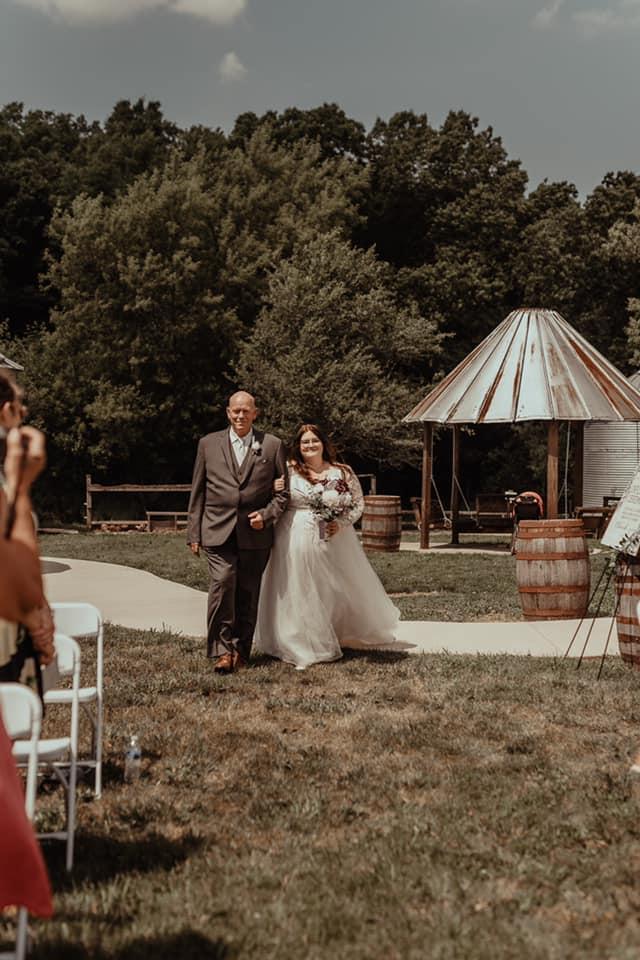 This place was GORGEOUS! It has beautiful outdoor ceremony sites, an amazing indoor reception spot that could have easily doubled as a ceremony site in the event of bad weather, his and hers silos, bathrooms, AND you can choose your own caterer (or do it yourself). They were so wonderfully accommodating and helpful…to the point where they were weed whacking the night of the rehearsal dinner to help us prepare the photo spots we needed. It was such a joy to have our wedding here!