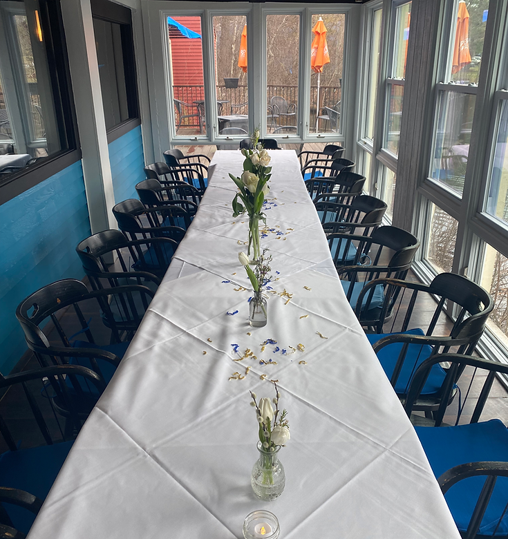 Accommodates approx. 24 people. Offers a complete "wall of windows" looking right out onto the pond! Note: The Bistro & the Porch are adjoined rooms which can be combined for larger events!Accommodates approx. 24 people. Offers a complete "wall of windows" looking right out onto the pond! Note: The Bistro & the Porch are adjoined rooms which can be combined for larger events!