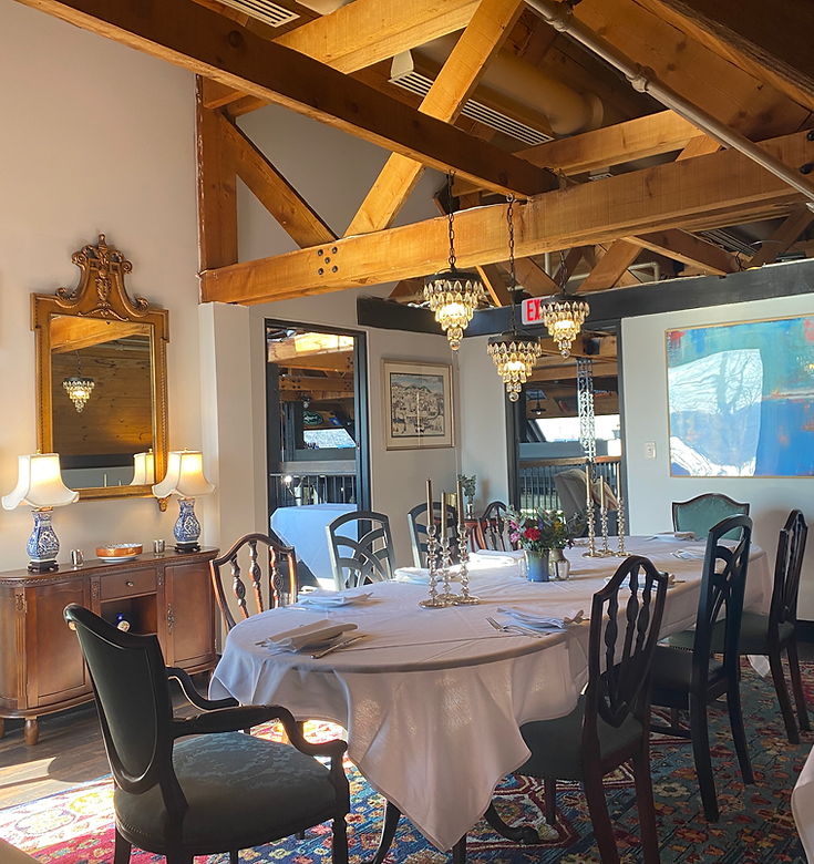 Private English-inspired dining room on the mezzanine level capable of seating up to 10 guests.