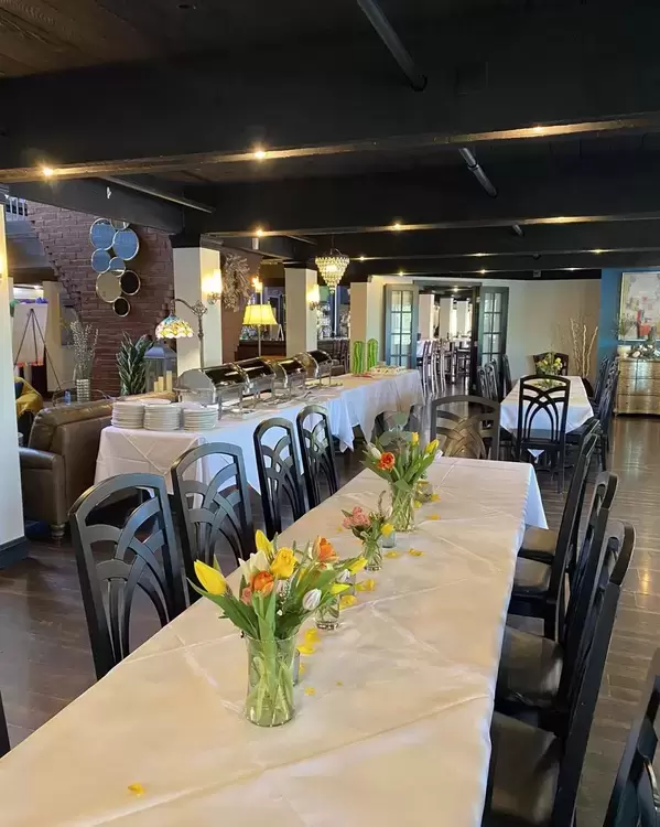 Accommodates approx. 80 guests. 'The Bistro' offers a gorgeous view of the pond, stunning fireplace and elegant feel perfect for a corporate luncheon or baby shower! Note: Note: The Bistro & the Porch are adjoined rooms which can be combined for larger events!