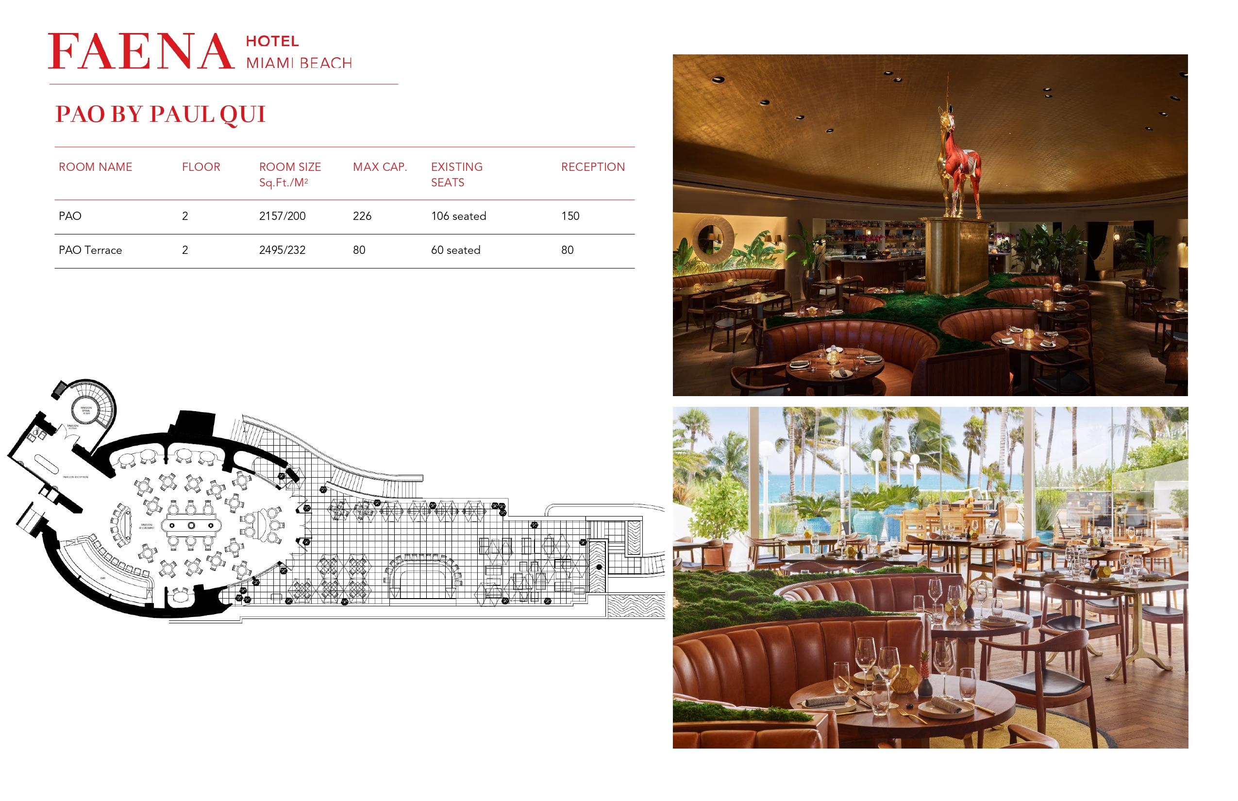 Showcasing Miami’s pristine beaches and tropical ambience, the Faena Pool is a picturesque setting to host an alfresco reception with a menu of grilled artisanal sandwiches, fresh salads and crudo specialties served poolside or on the beach.