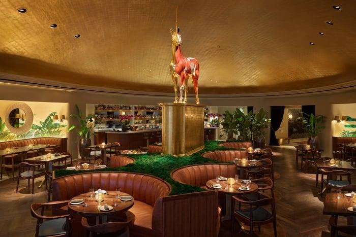 Helmed by celebrated chef Paul Qui, Pao pairs technique-driven cuisine highlighting Asian and Filipino flavors with a world-class wine program. The oceanfront setting, offering indoor and outdoor dining options, is home to an impressive golden unicorn sculpted by Damien Hirst.