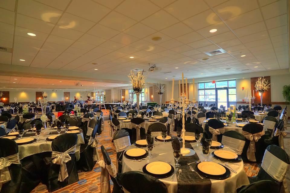 Tables Linens Dance Floor Stage LCD Projectors along with Electric Screens Dimmer Lights