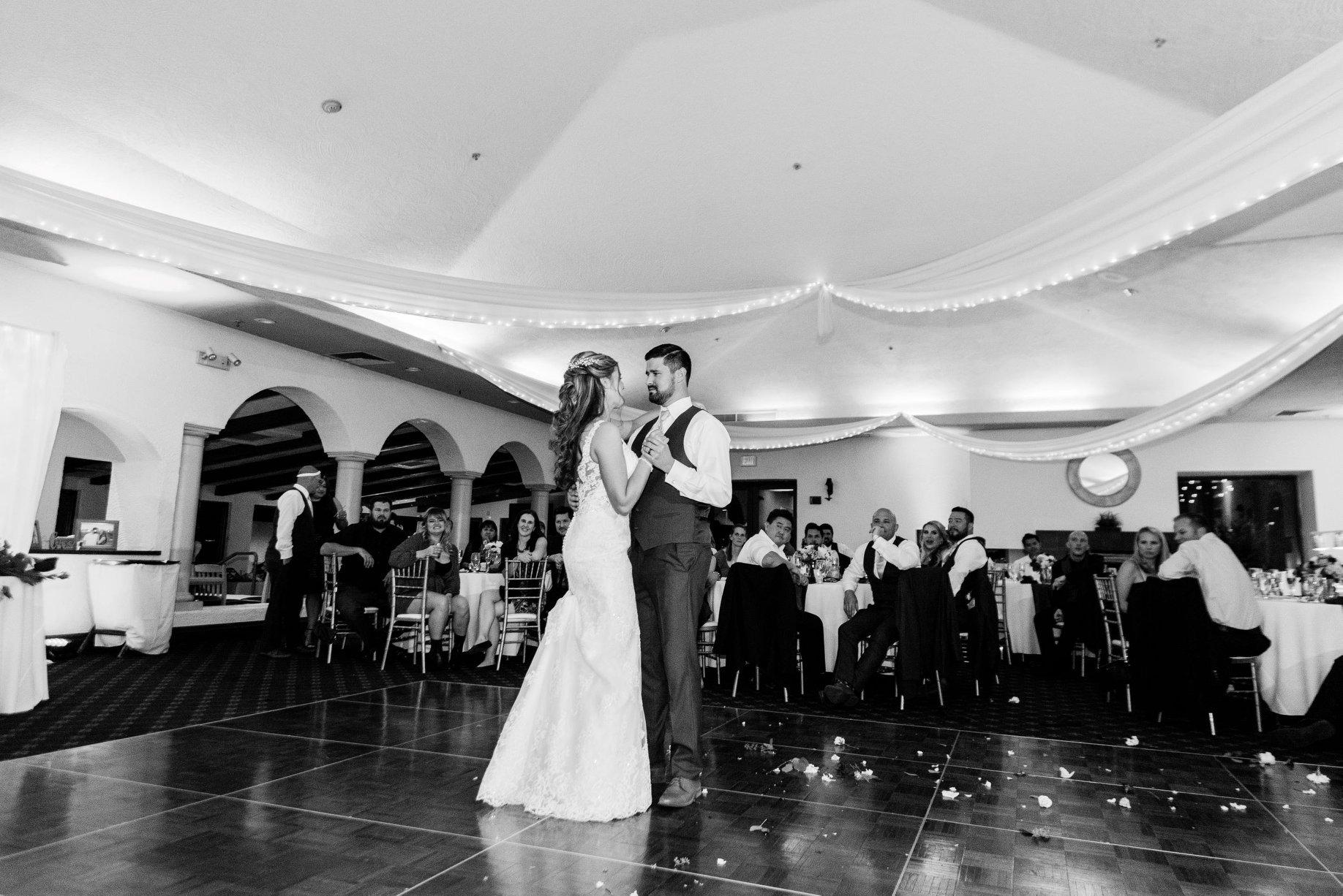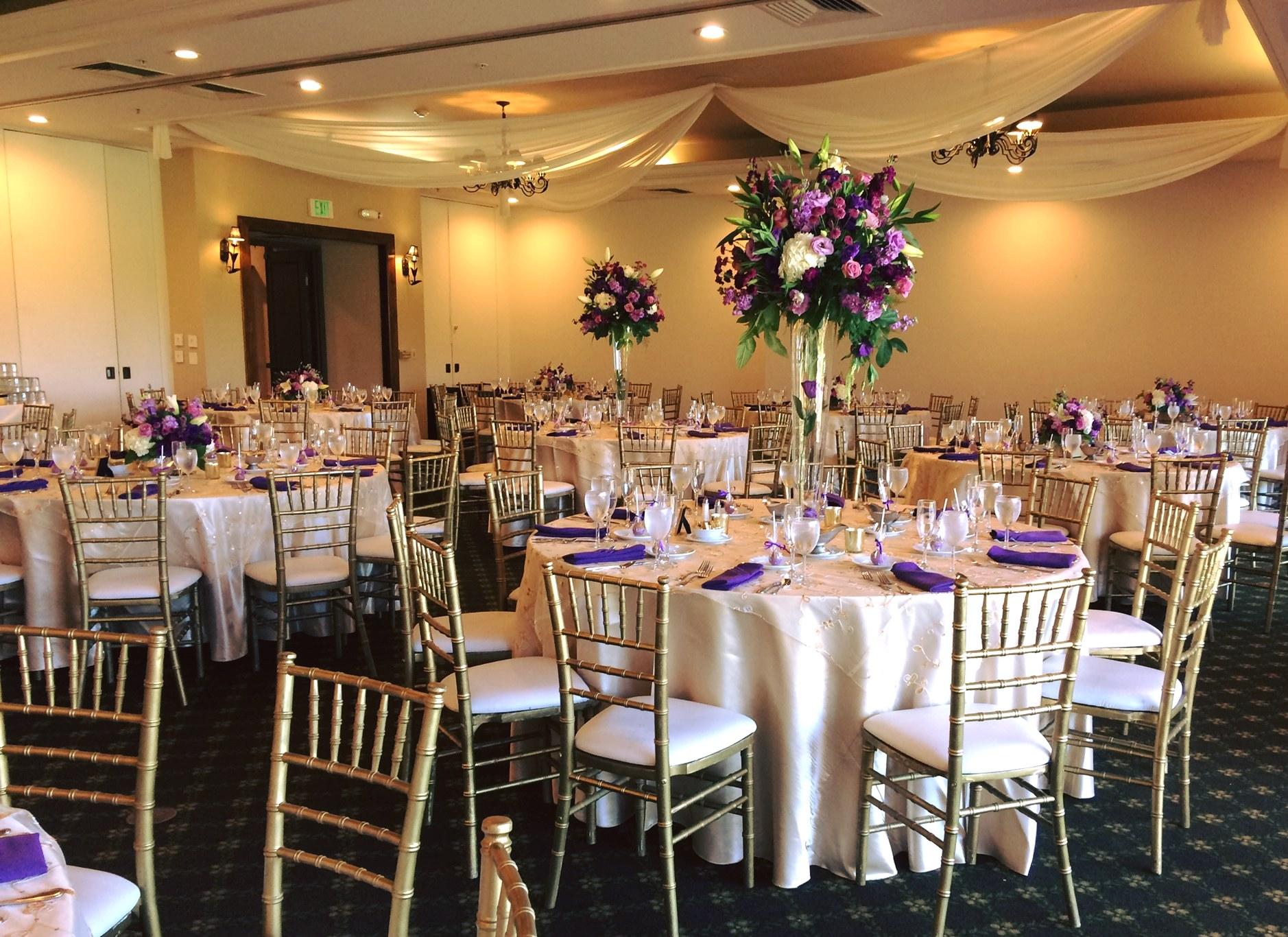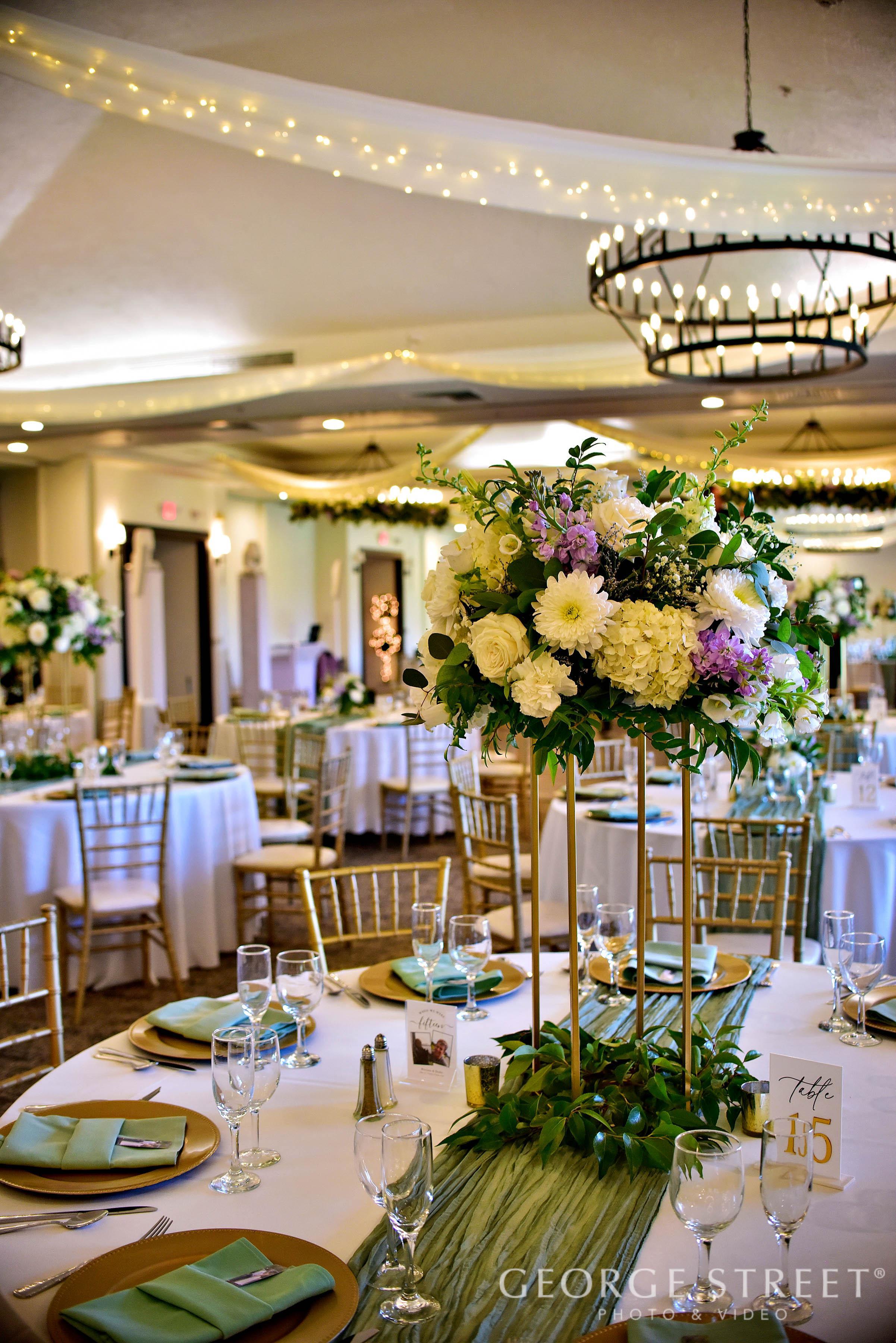 Upon arrival to the property you are greeted by the beautiful Spanish-style clubhouse featuring a courtyard fountain and manicured landscape. The Grandiose banquet room is spacious yet inviting and can be set for as many as 400 or arranged for an intimate group of 50. This space provides our signature wall of windows with patio doors that open up to our veranda overlooking the wedding ceremony area. Allow yourself to be taken away by the amazing views and well kept golf course that surround you.