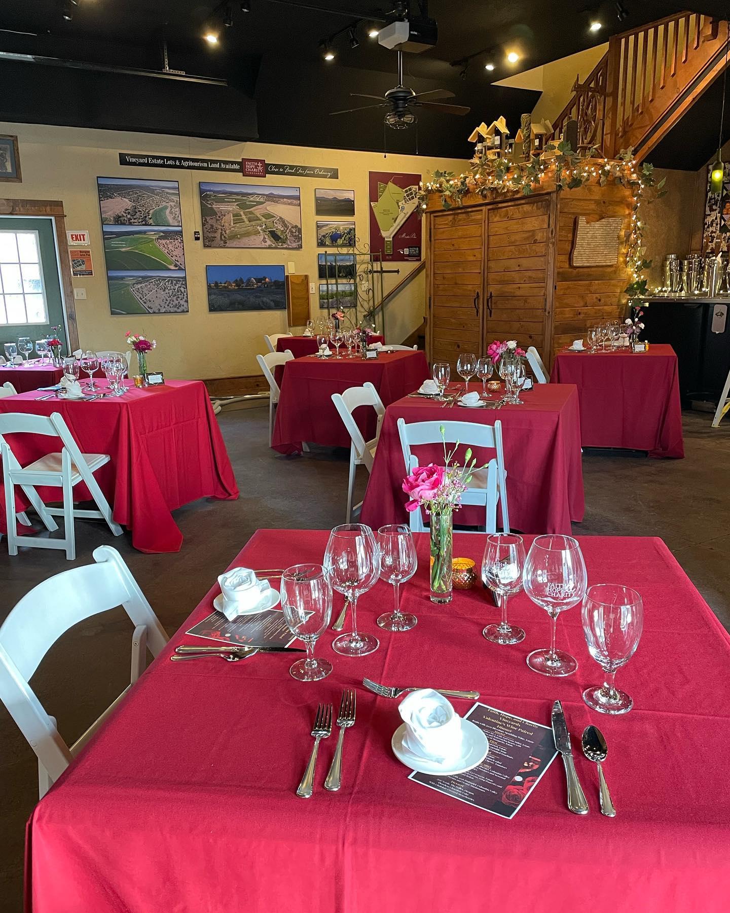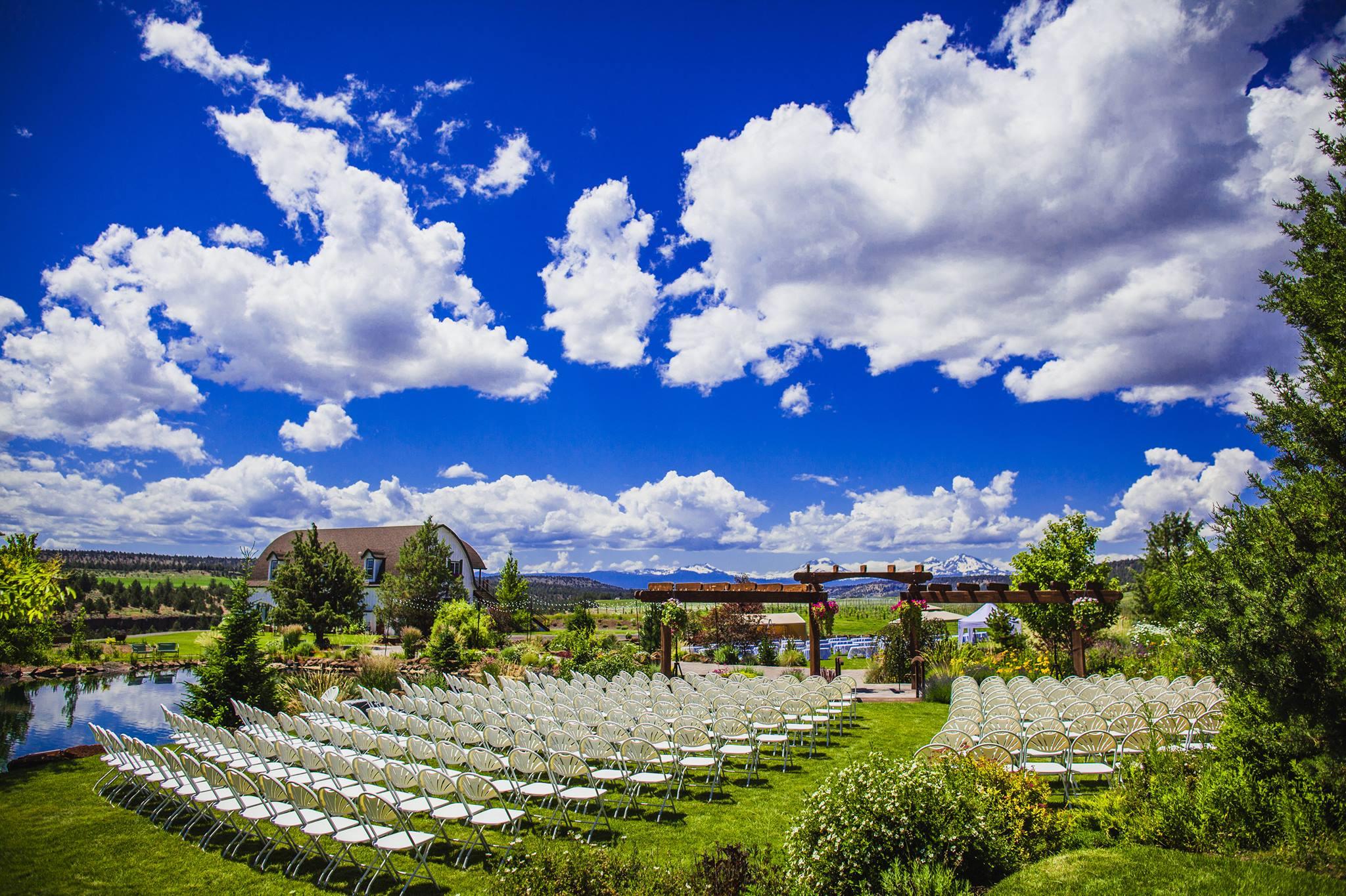 This spectacular venue is owned by Roger and Cindy Grossmann, Faith, Hope & Charity Vineyard and Winery in Terrebonne, Oregon is a spectacular country venue for weddings and receptions. Located on 312 acres just 14 miles from Smith Rock State Park, the venue is situated between two ridges and a canyon. With the beautiful Three Sisters Mountains and natural beauty surrounding the event center and tasting room, this is an idyllic location for wedding ceremonies, receptions, rehearsal dinners, bridal showers, and engagement parties.